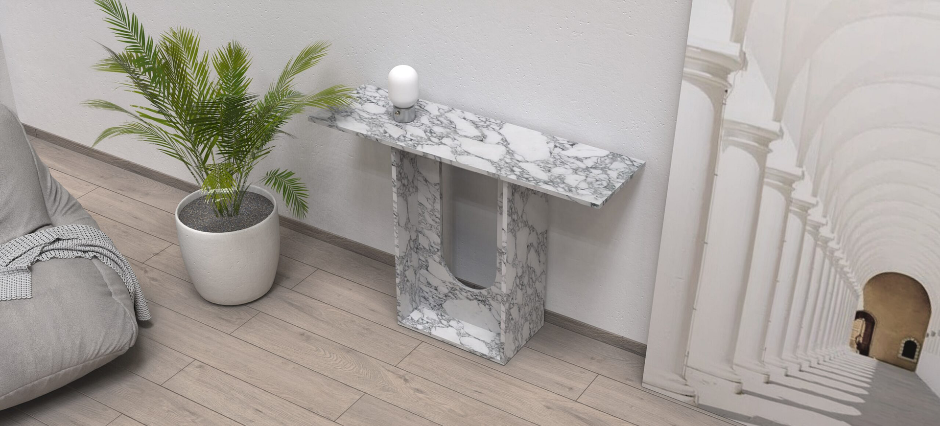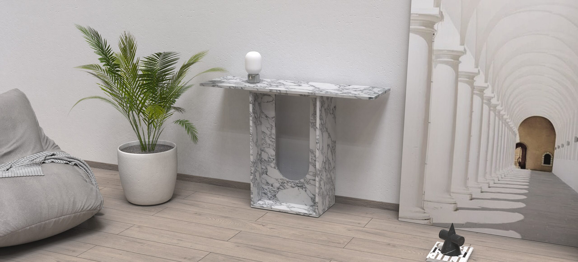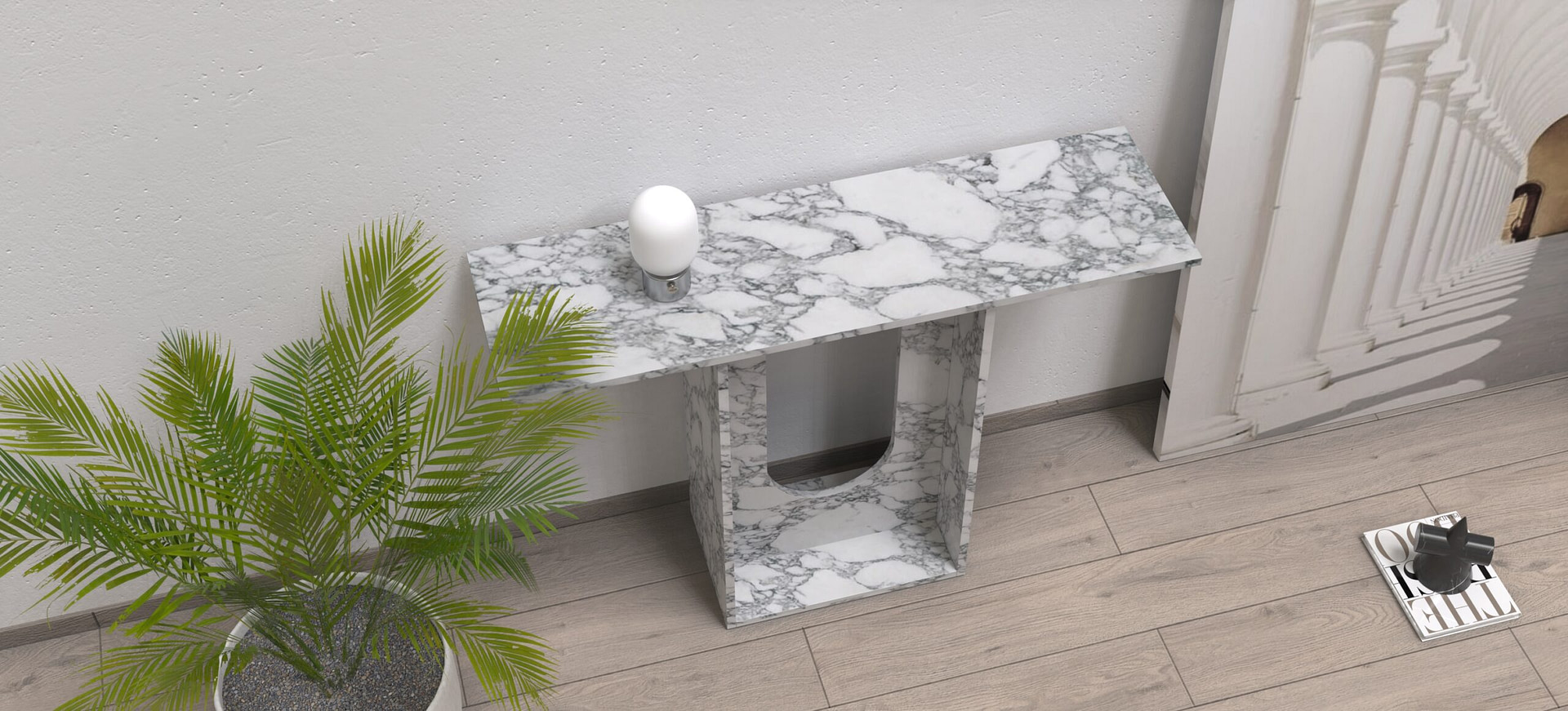 • Disponibilità di vari colori e finiture: le consolle in marmo si trovano in diversi tipi di marmo, sia chiaro che scuro, sia lucido che opaco, a seconda dei gusti e dello stile della stanza.