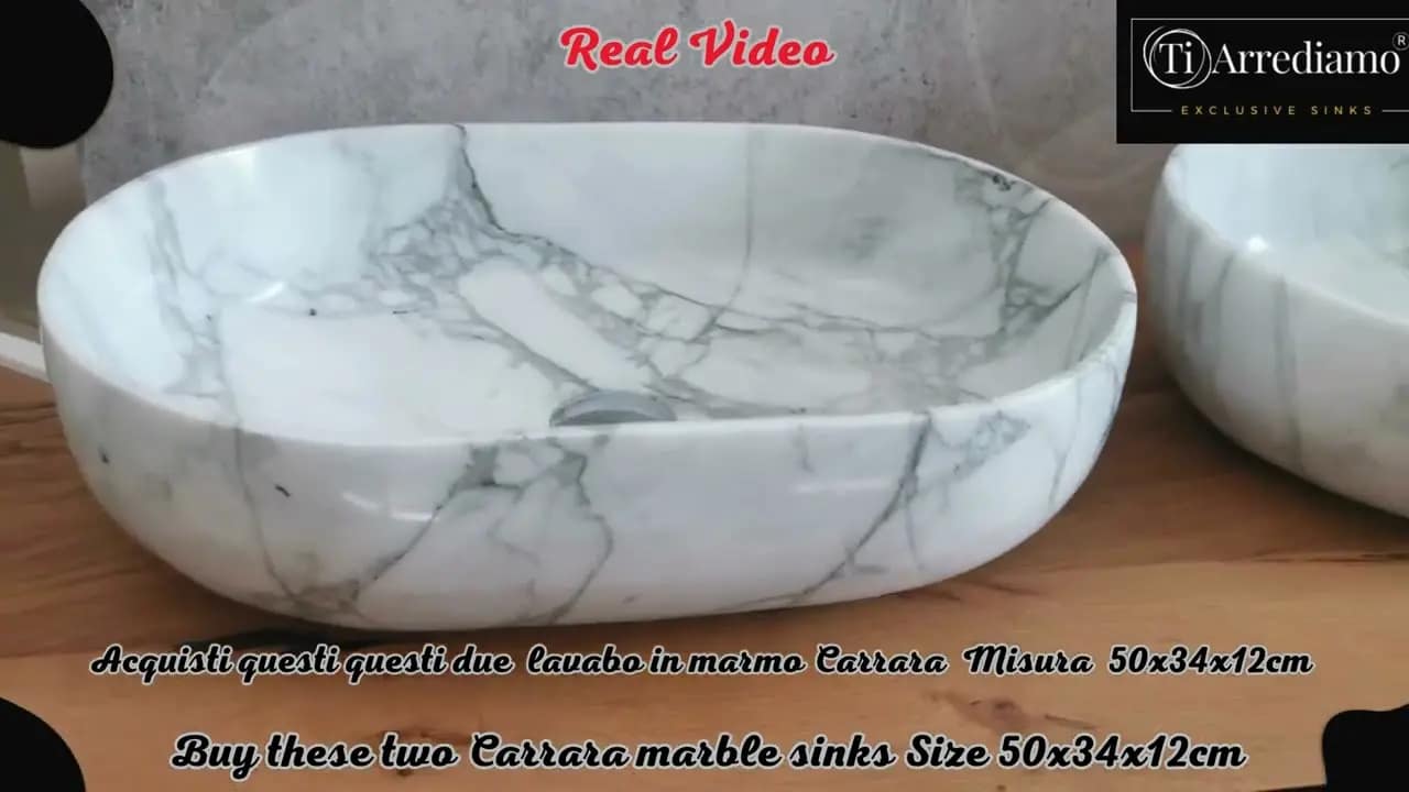 Acquisti i due Lavabi da appoggio in marmo carrara che vedi nelle foto e nel video!  Immagini reali dei lavandini
