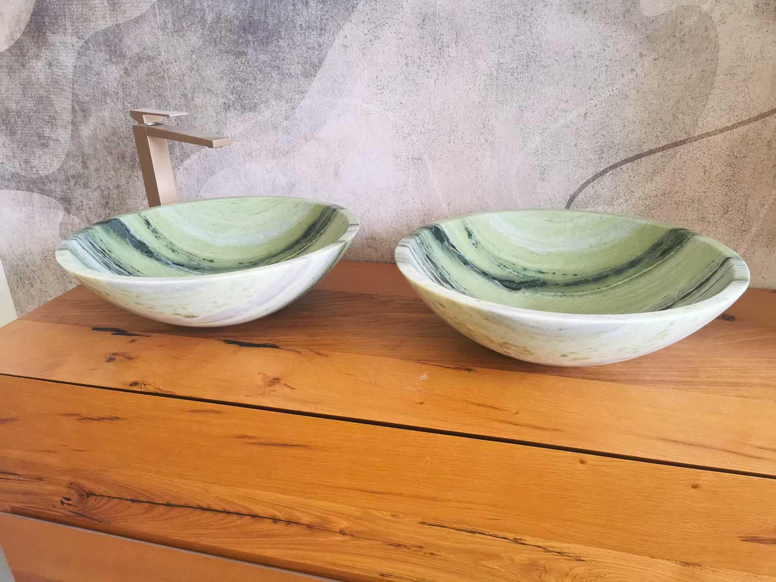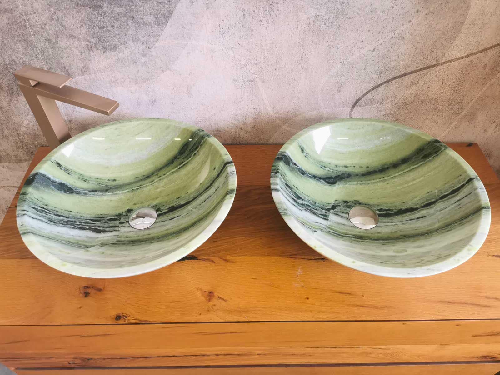 Coppia lavabi in marmo verde Sangrilla Misura 43x43x14cm