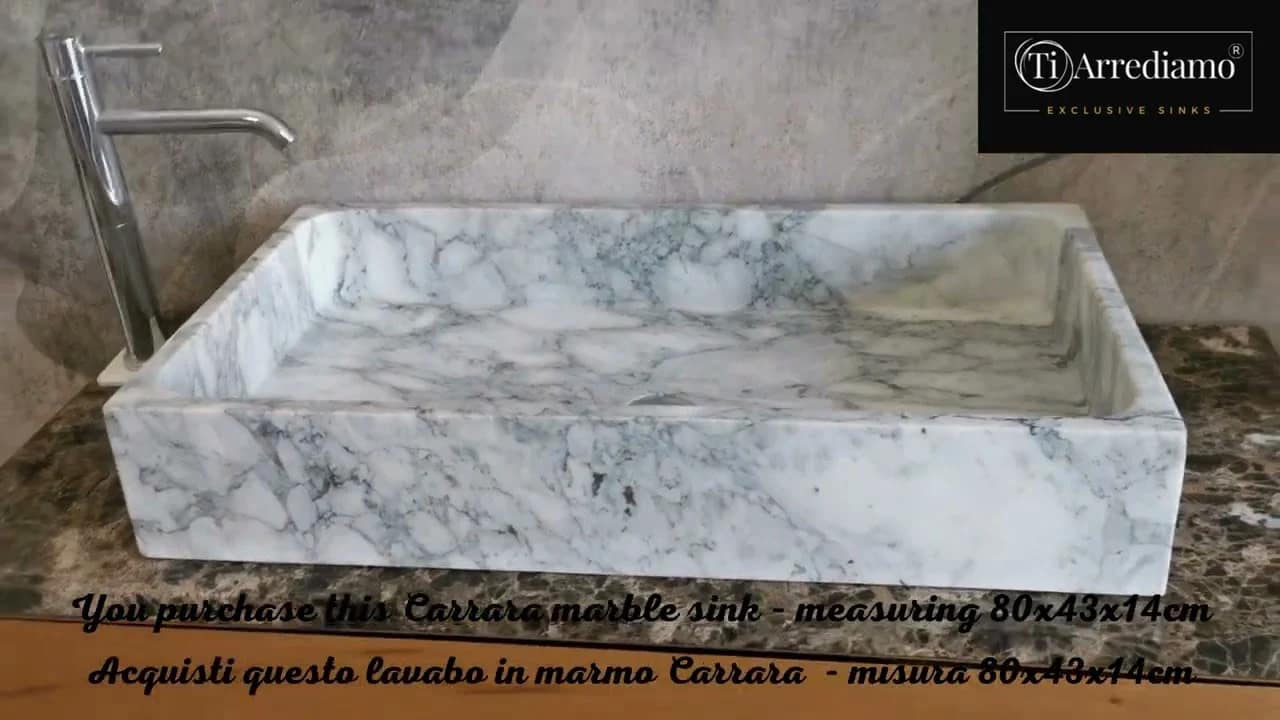 Lavabo appoggio in Marmo Carrara Finitura Opaca Misura 80x43x14cm