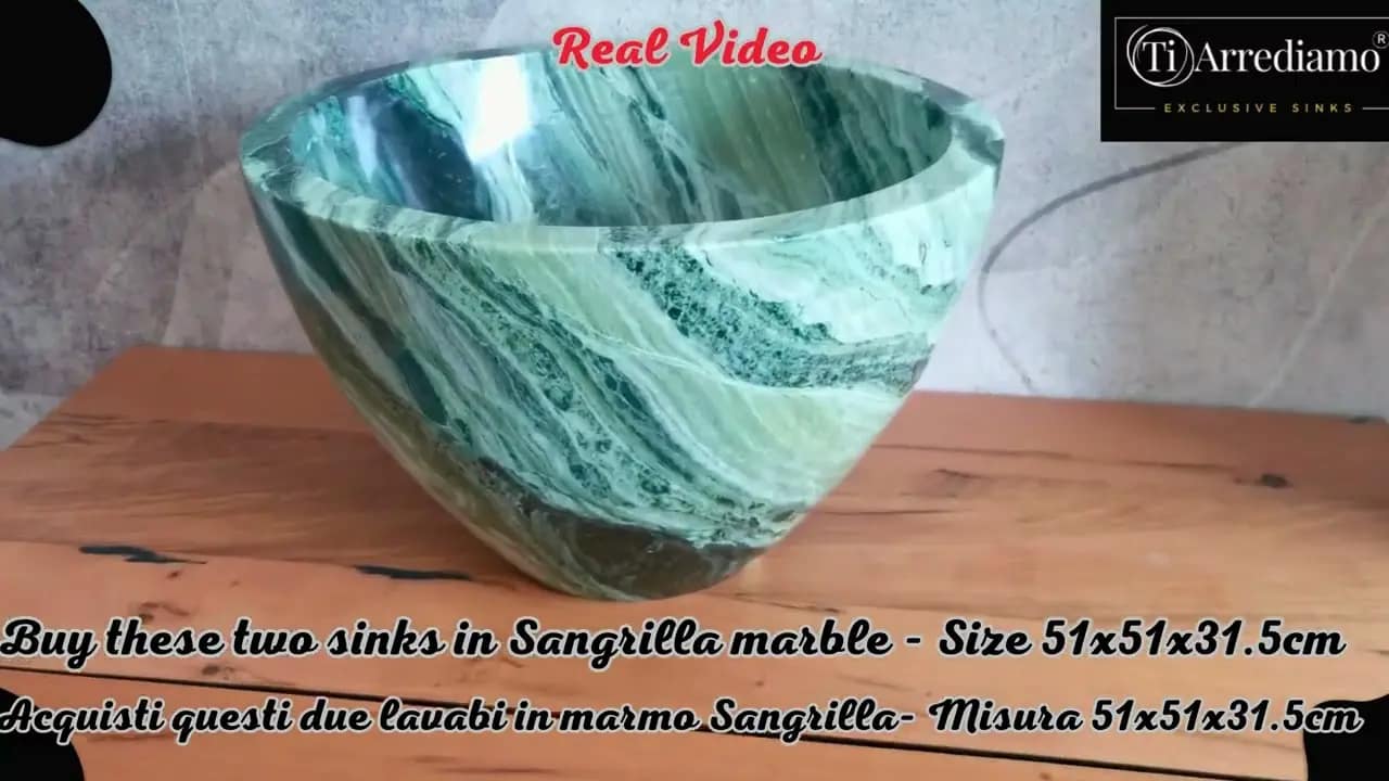 Acquisti il lavabo in marmo verde sangrilla 51x51x32.5cm che vedi nelle foto e nel video!  Immagini reali del lavandino