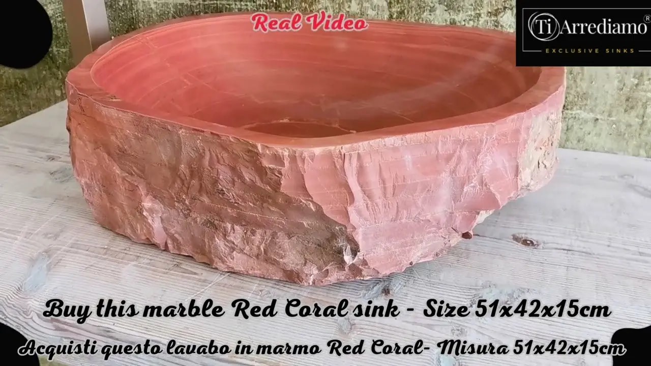 Lavabo rustico in marmo rosso Red Coral Misura 51x42x15cm