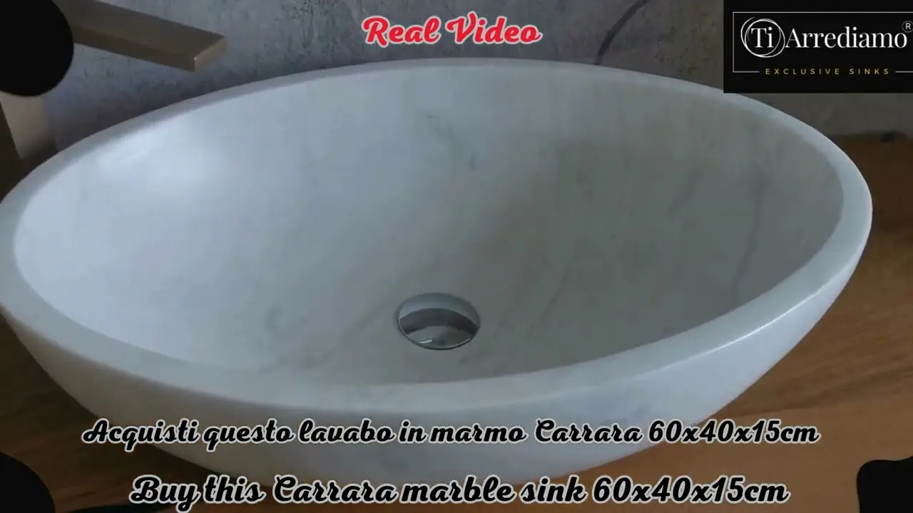 Questo lavabo da appoggio in marmo di Carrara naturale (60x40x15 cm) รจ un autentico pezzo dโ€™arredo che unisce funzionalitร  ed eleganza.