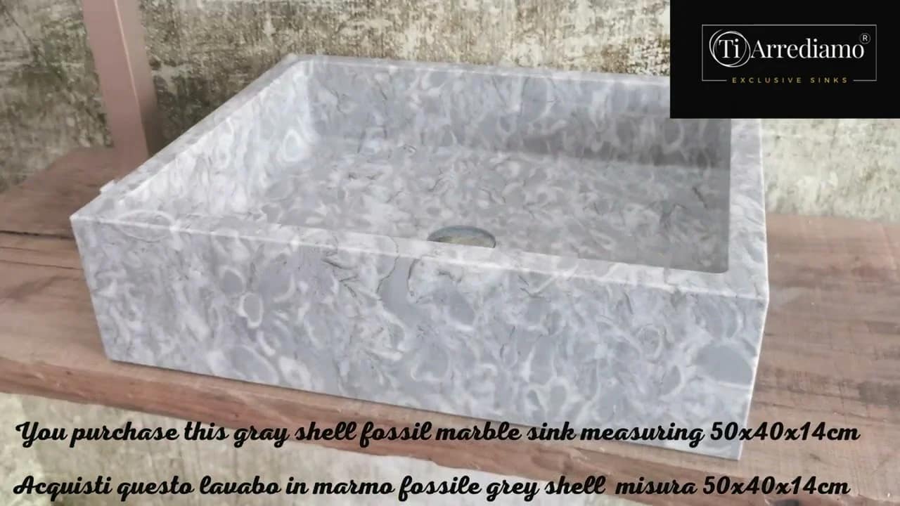 Acquisti questo lavabo da appoggio in marmo fossile Grey Shell che vedi in foto e in video.