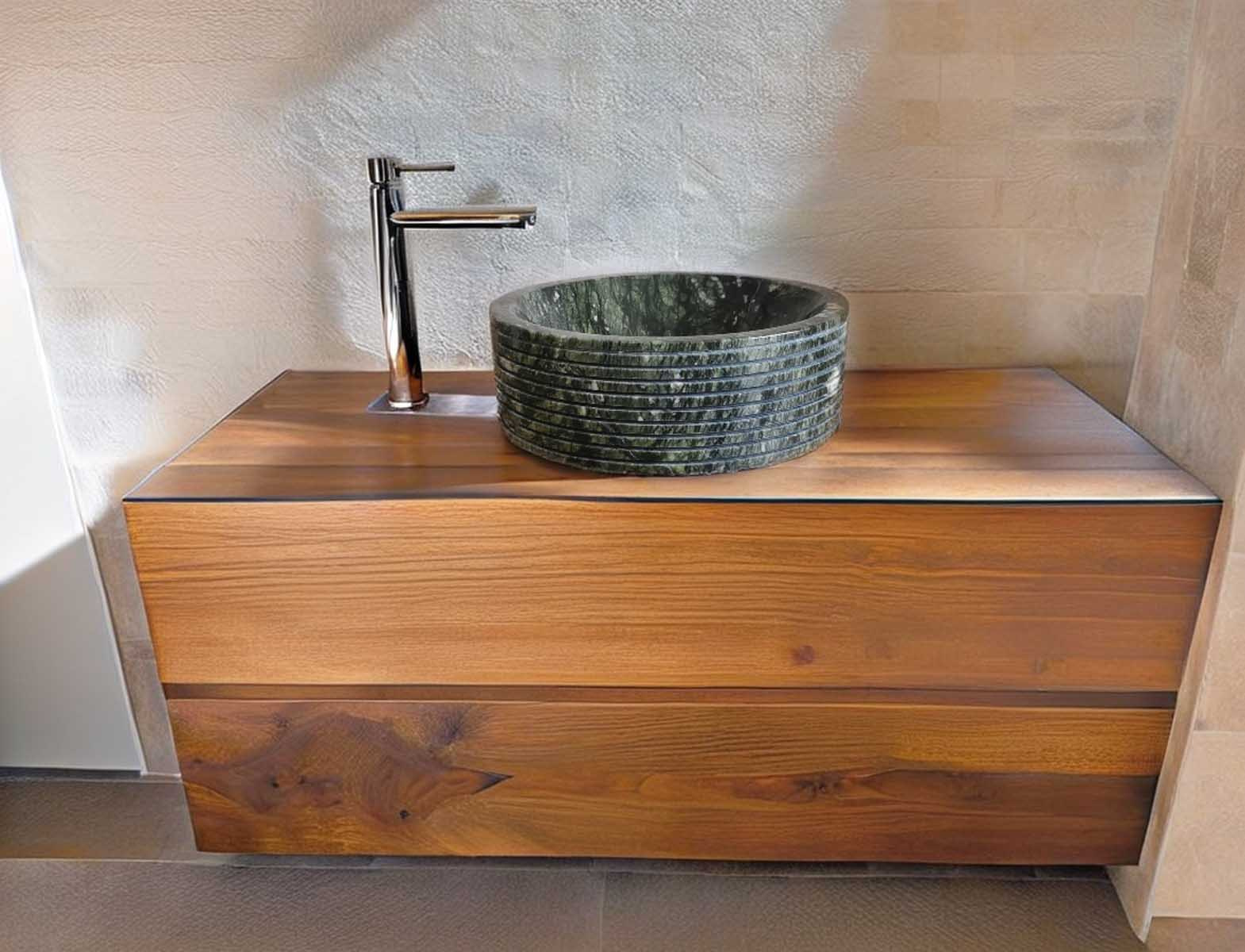 Il lavello di design in marmo verde รจ una soluzione elegante per chi desidera un bagno raffinato e di forte personalitร .