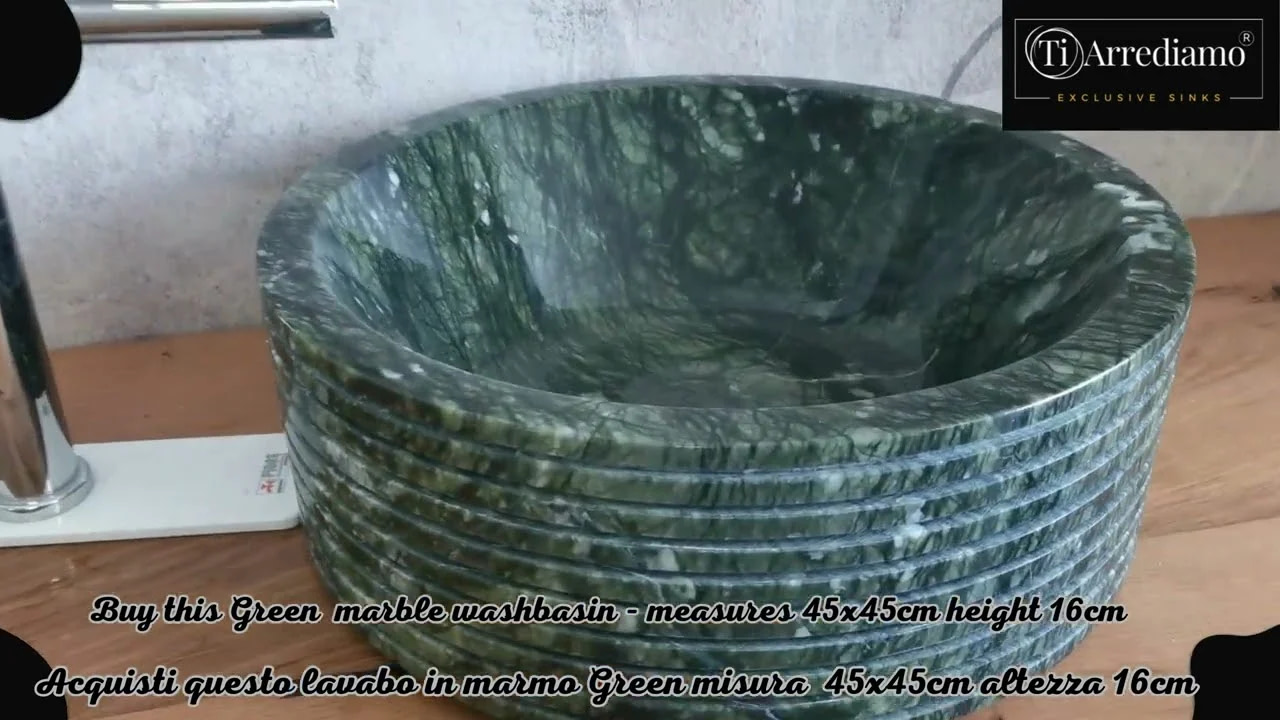 Realizzato in marmo naturale verde, questo lavello si distingue per le sue venature autentiche e le sfumature profonde che rendono ogni pezzo unico.