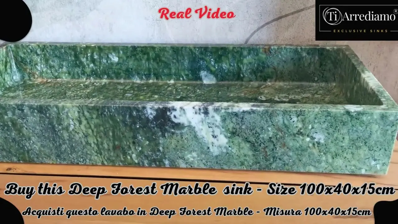 Lavabo in marmo Deep Forest 100x40cm – Lavabo rettangolare da appoggio grande