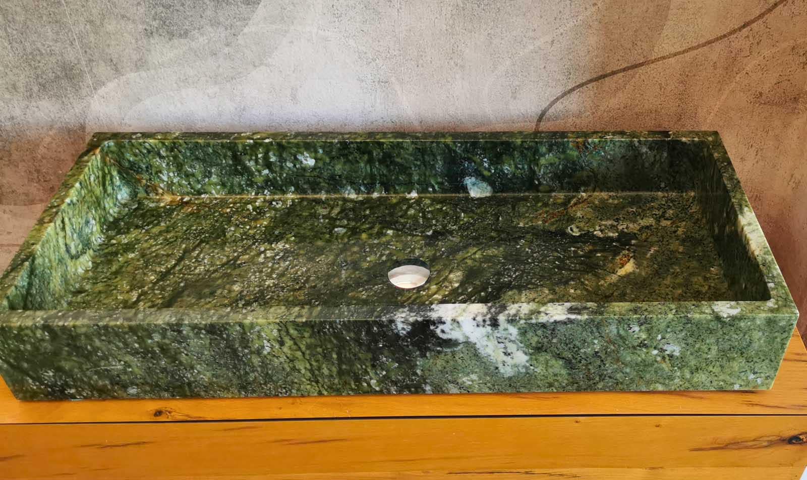 Lavabo in marmo Deep Forest 100x40cm โ€“ Lavabo rettangolare da appoggio grande