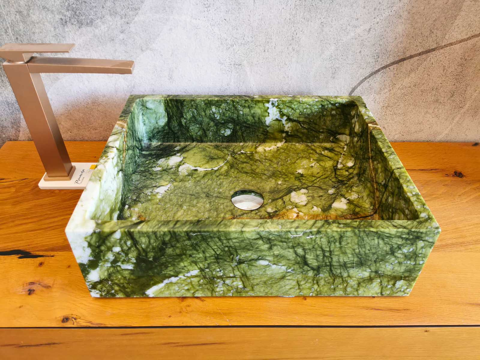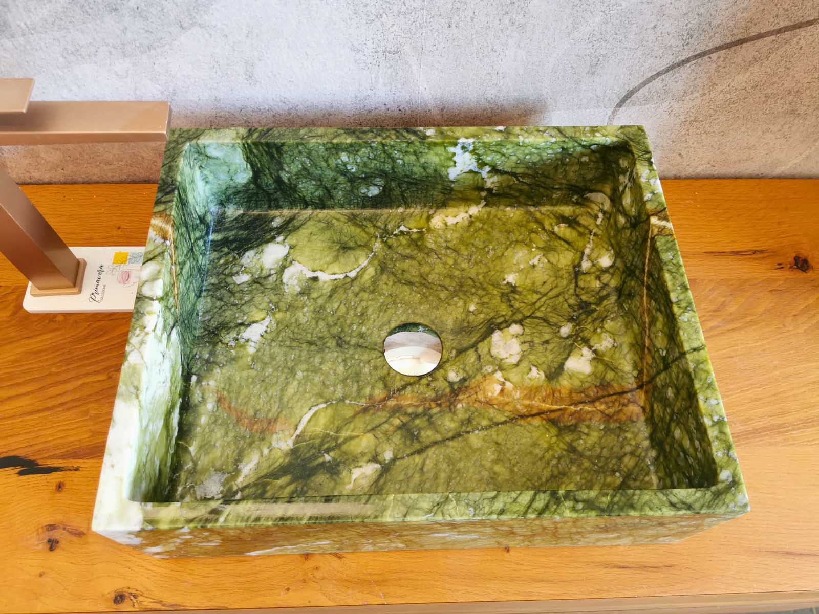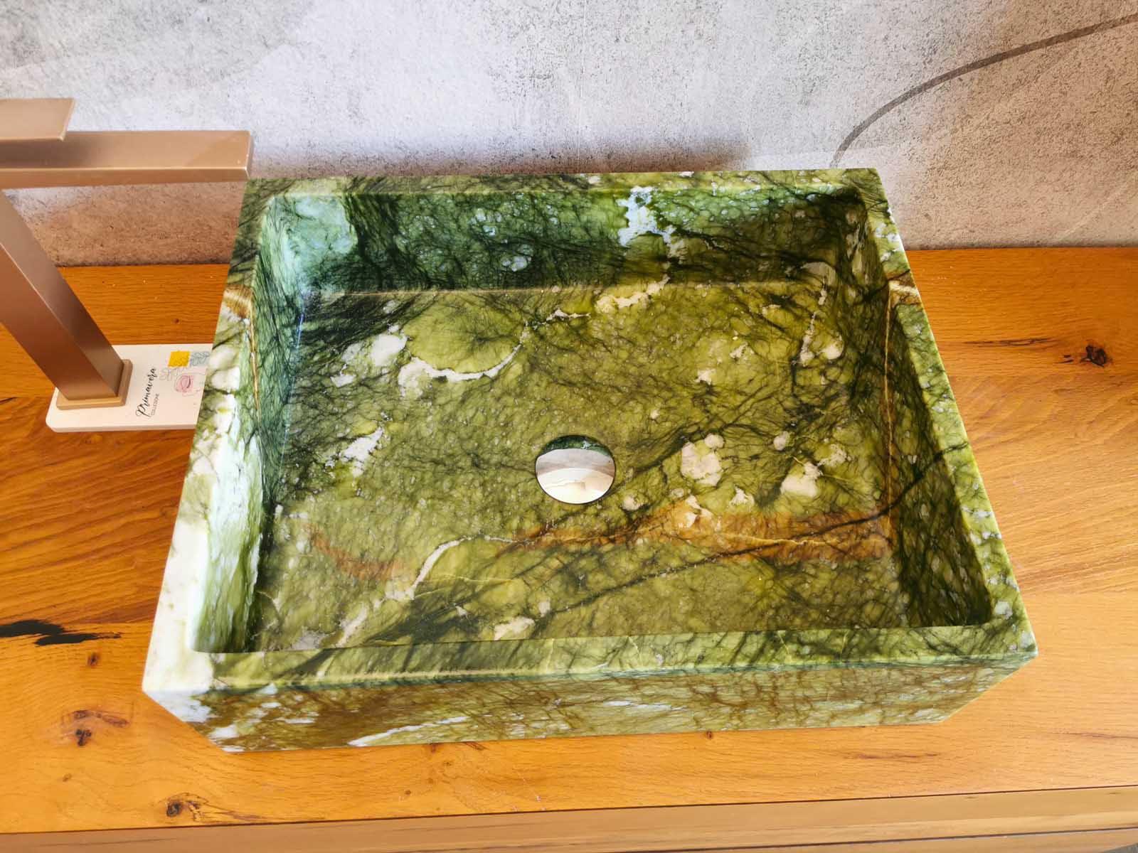 Lavabo in marmo Deep Forest 50×40 cm – Lavabo da appoggio in pietra naturale monoblocco