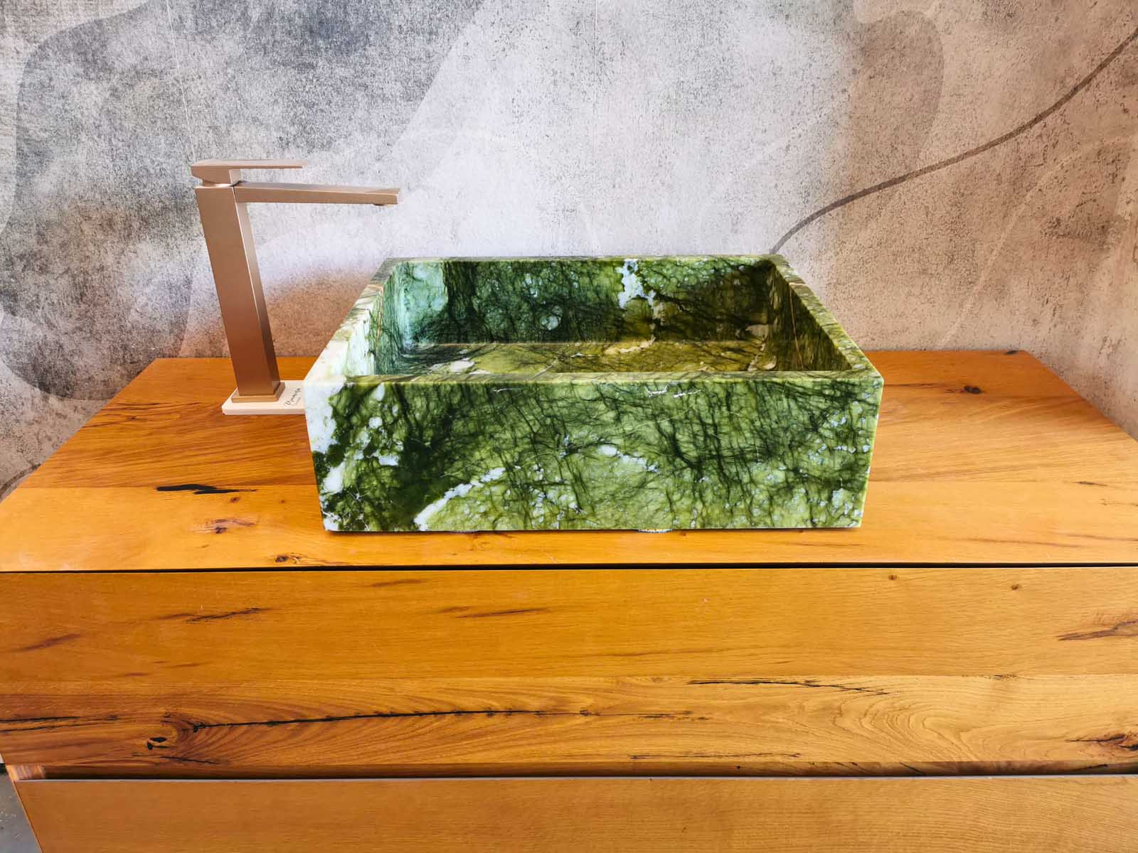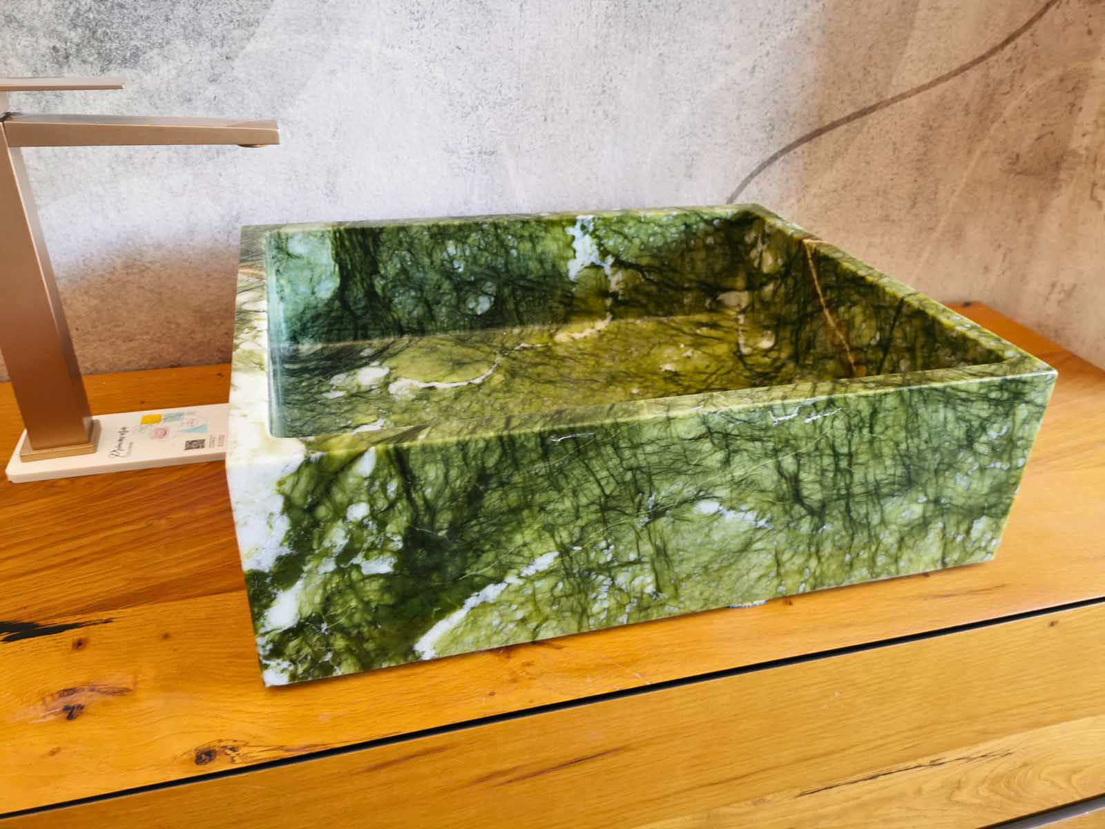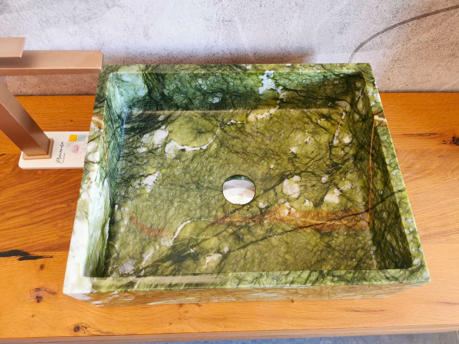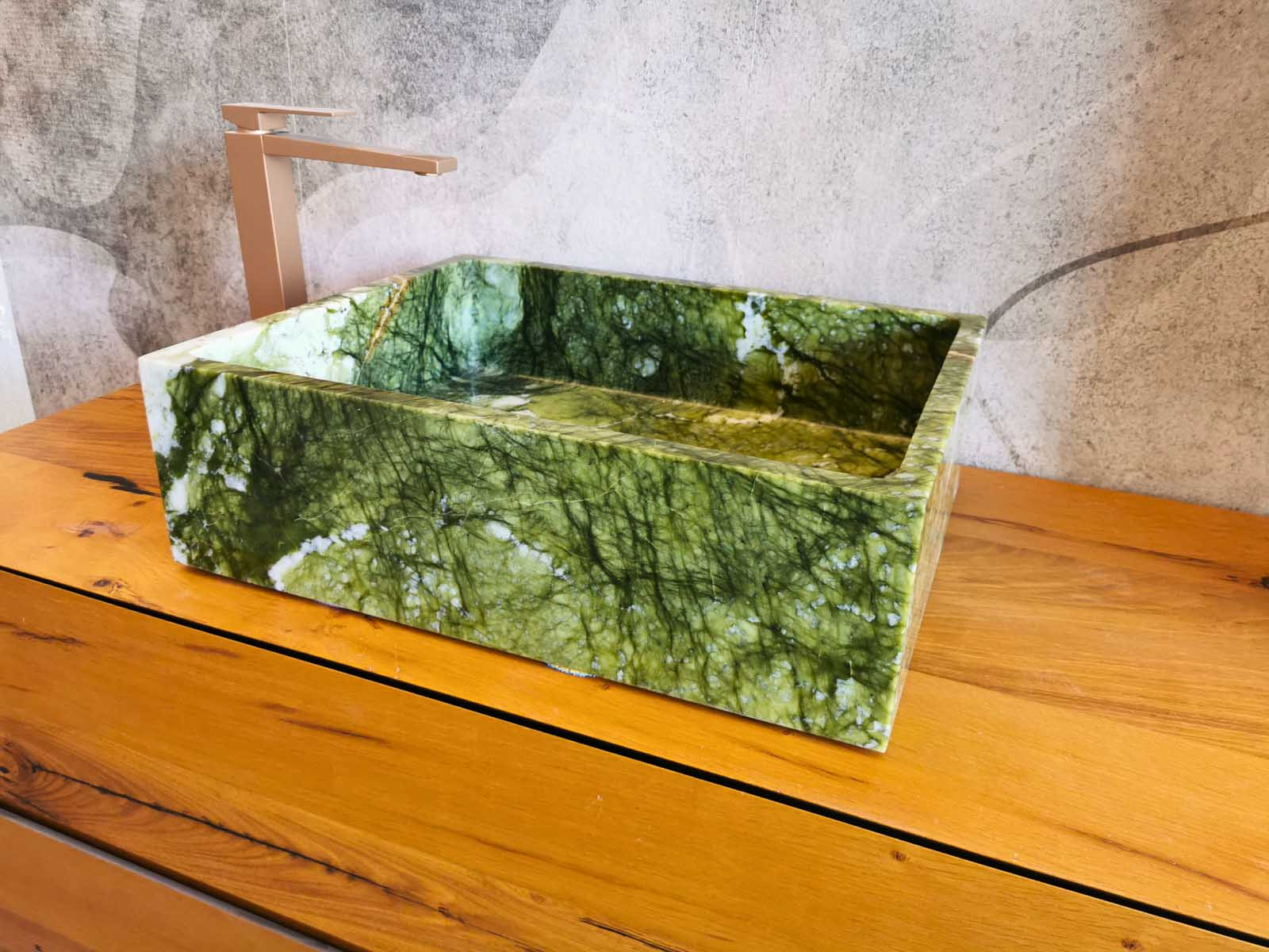 Lavabo in marmo Deep Forest 50×40 cm – Lavabo da appoggio in pietra naturale monoblocco