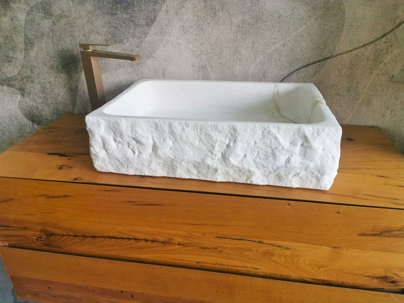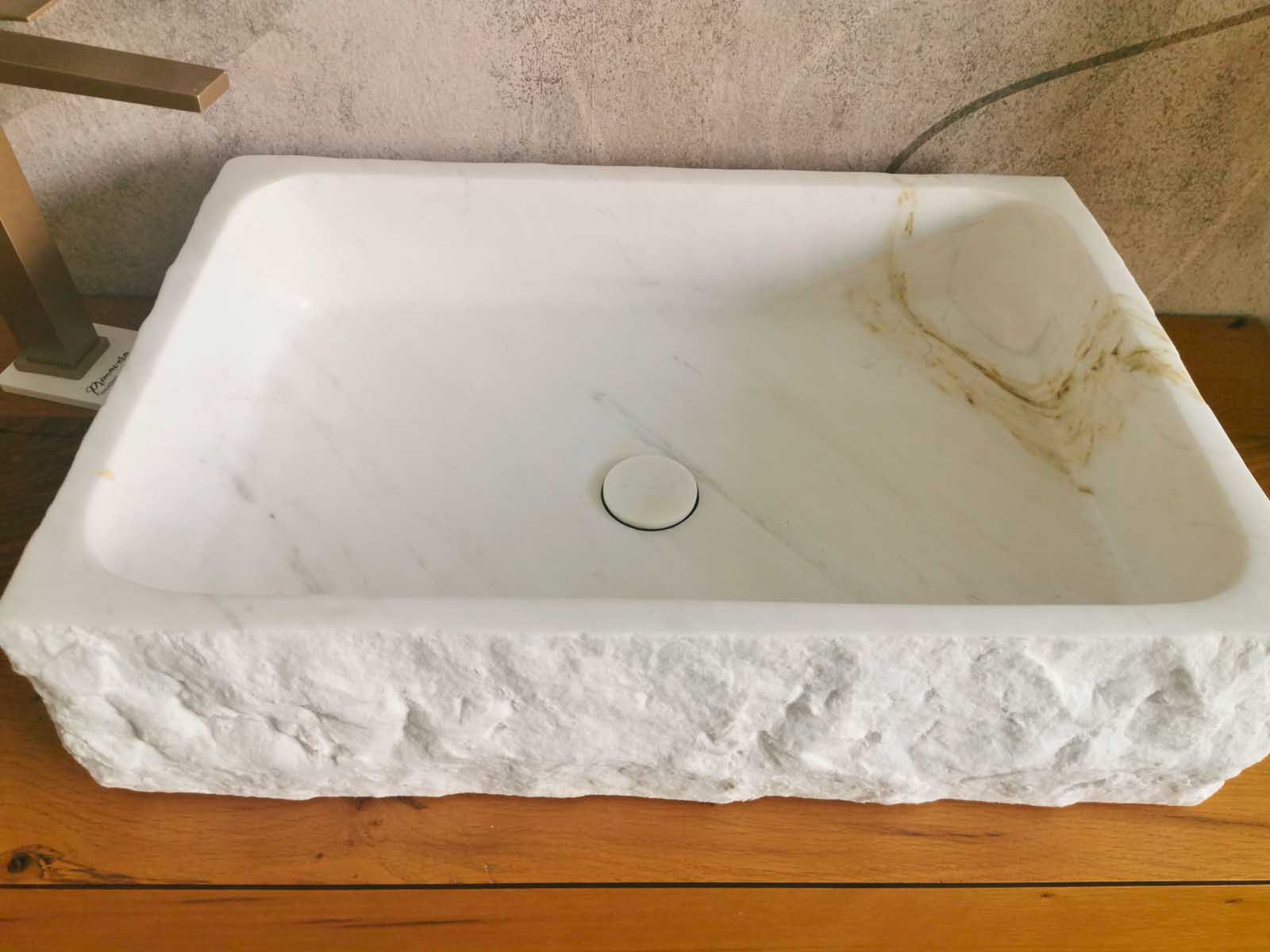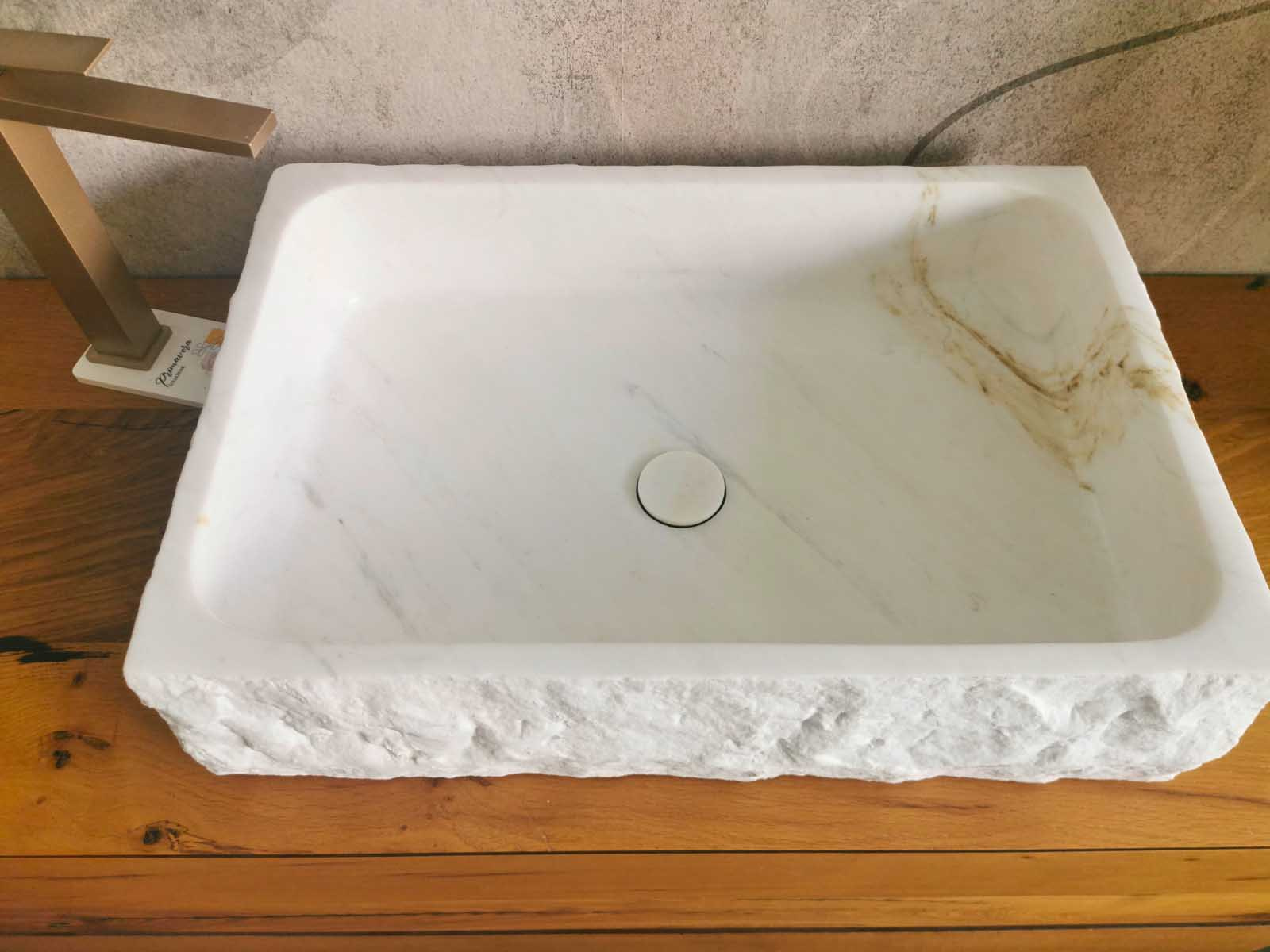 Lavabo in marmo di Carrara grezzo 60x40x15cm – con piletta e cover in marmo