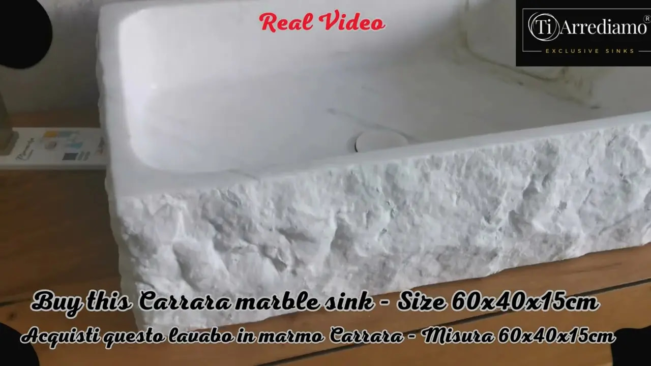 Lavabo in marmo di Carrara grezzo 60x40x15cm โ€“ con piletta e cover in marmo