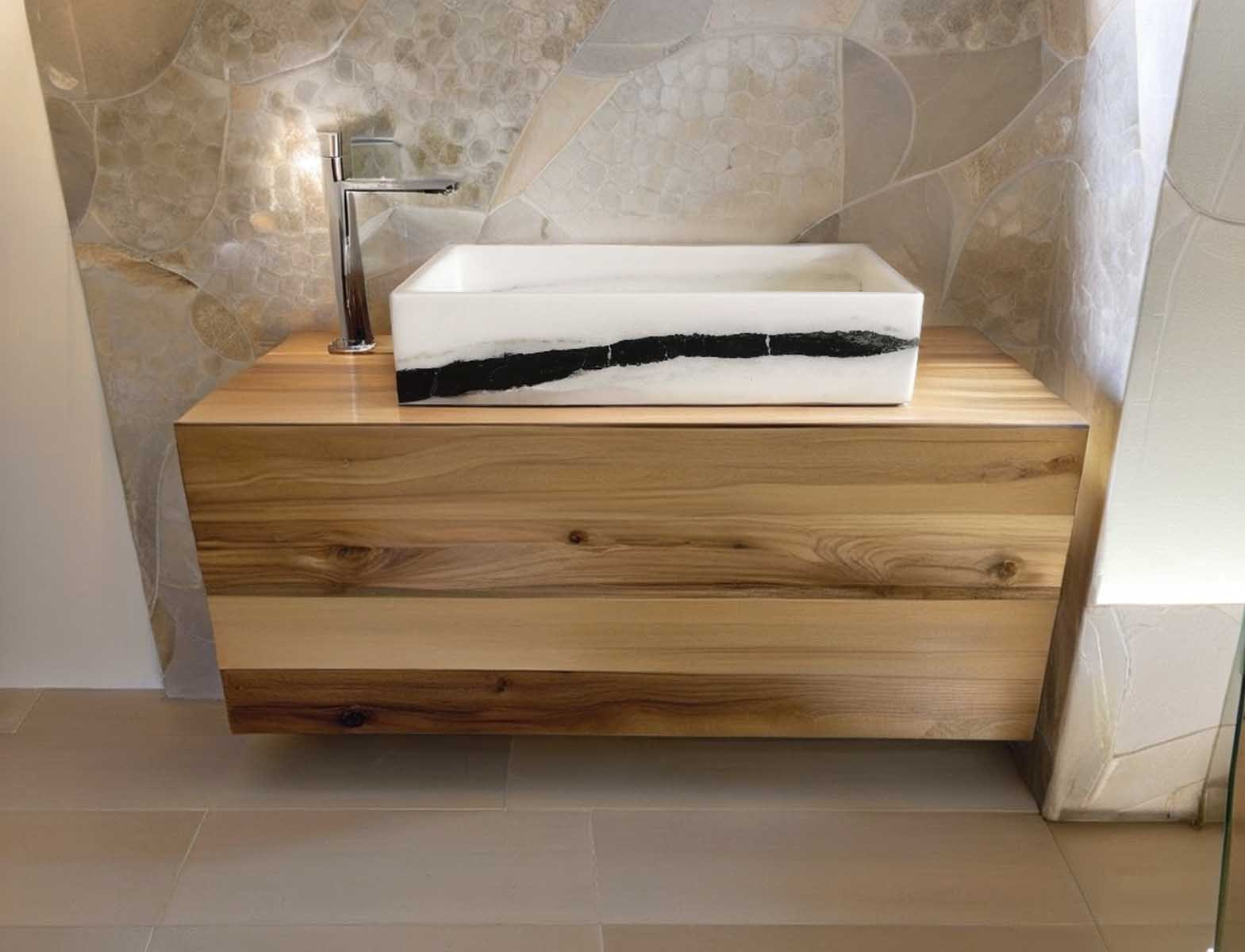 Il lavabo in marmo Panda è una scelta raffinata per chi desidera un bagno dal forte impatto estetico.
