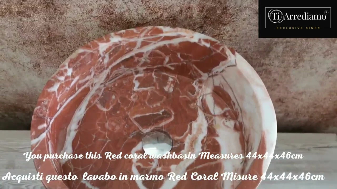 Lavabo in Marmo Red Coral ALTEZZA 46 cm Diametro 44 cm