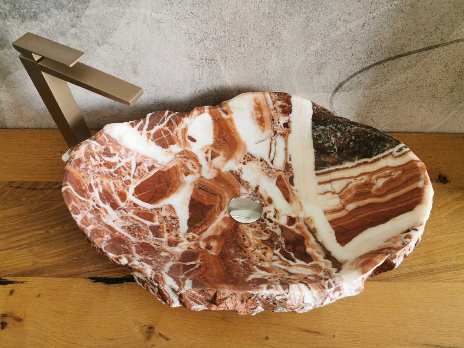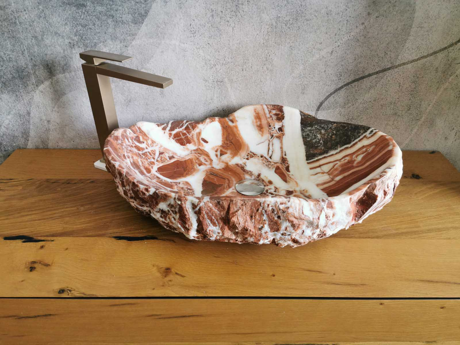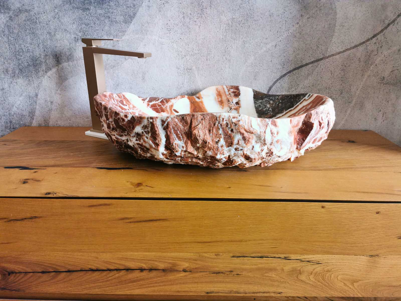 Lavabo in marmo Red Coral rustico 62x42x16 cm monoblocco