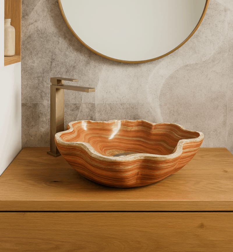 Perfetto per chi cerca un arredo bagno esclusivo, questo lavabo unisce funzionalità, design e lusso naturale.