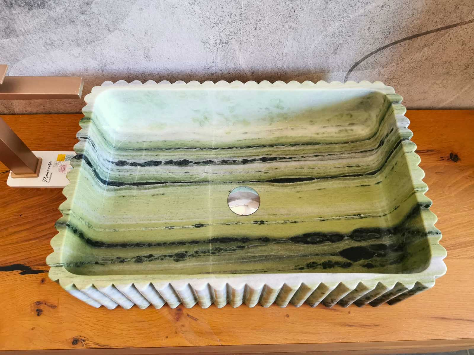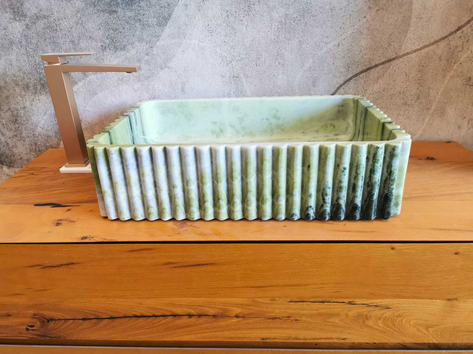 Ogni lavabo in marmo verde presenta variazioni naturali di venatura e colore, garanzia di autenticità e unicità.