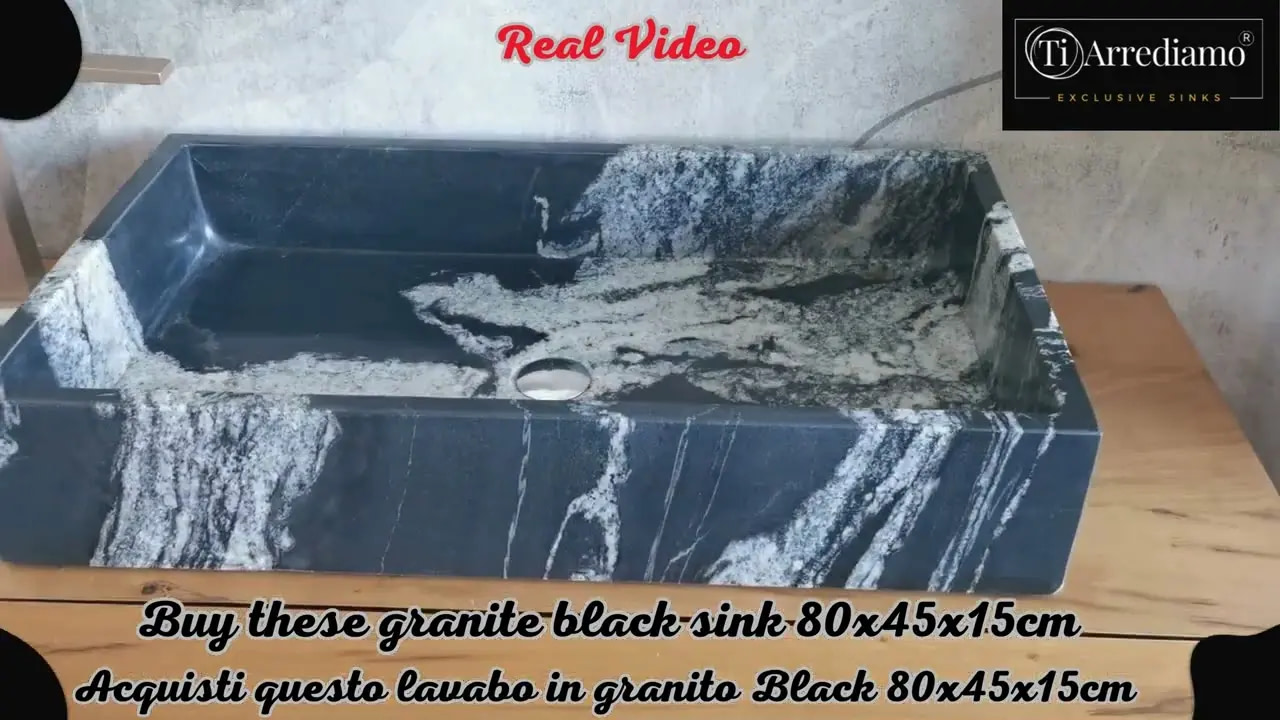 Lavabo da appoggio rettangolare in Granito Black Misura 80x45x16cm
