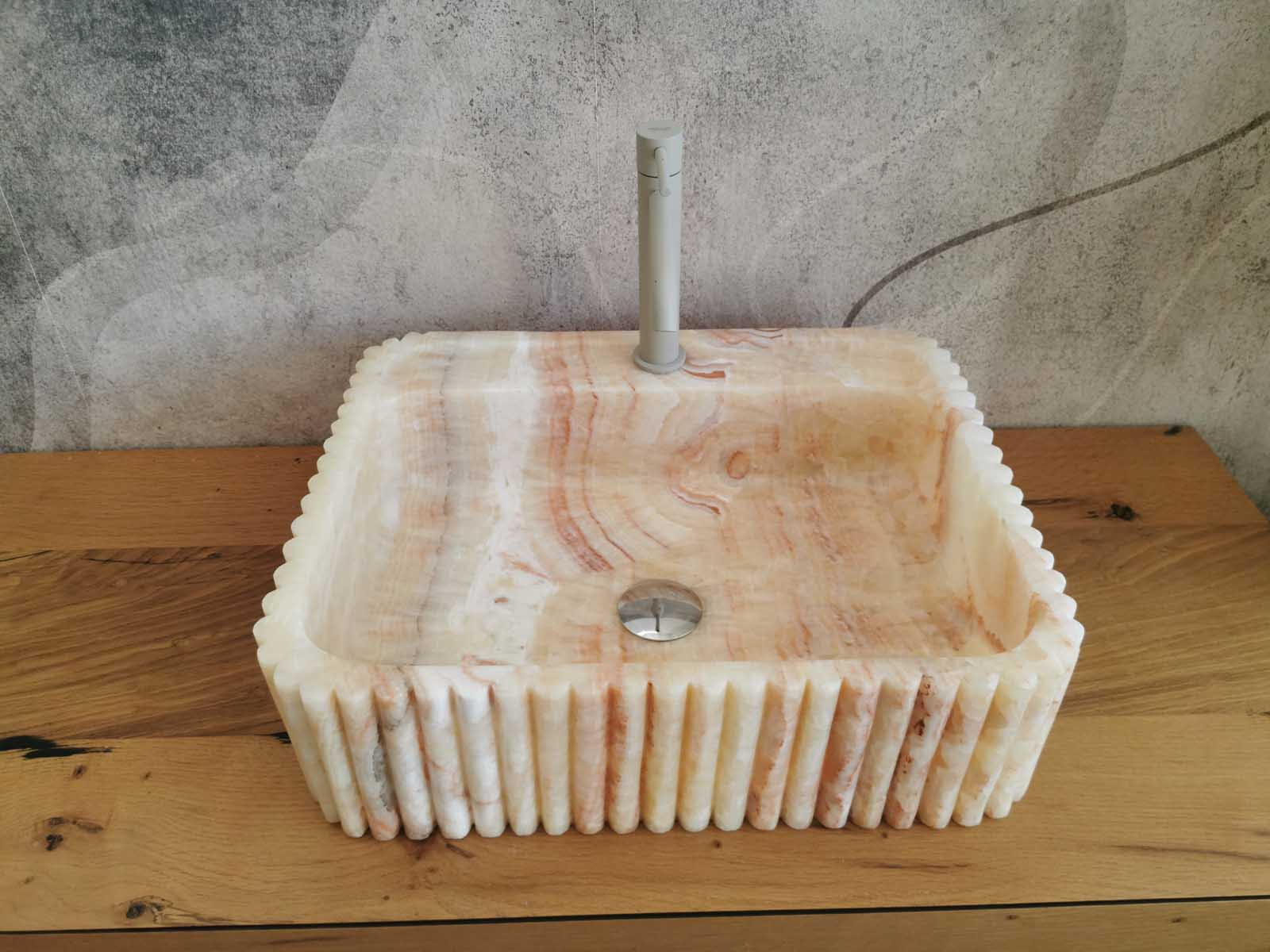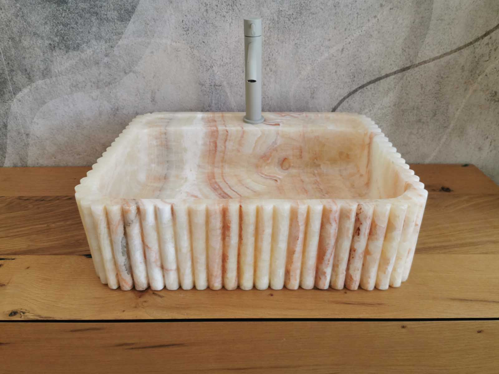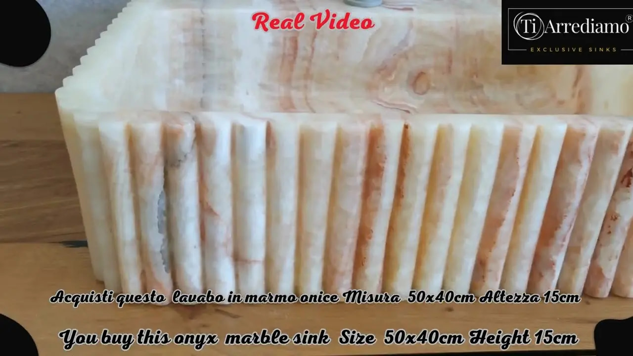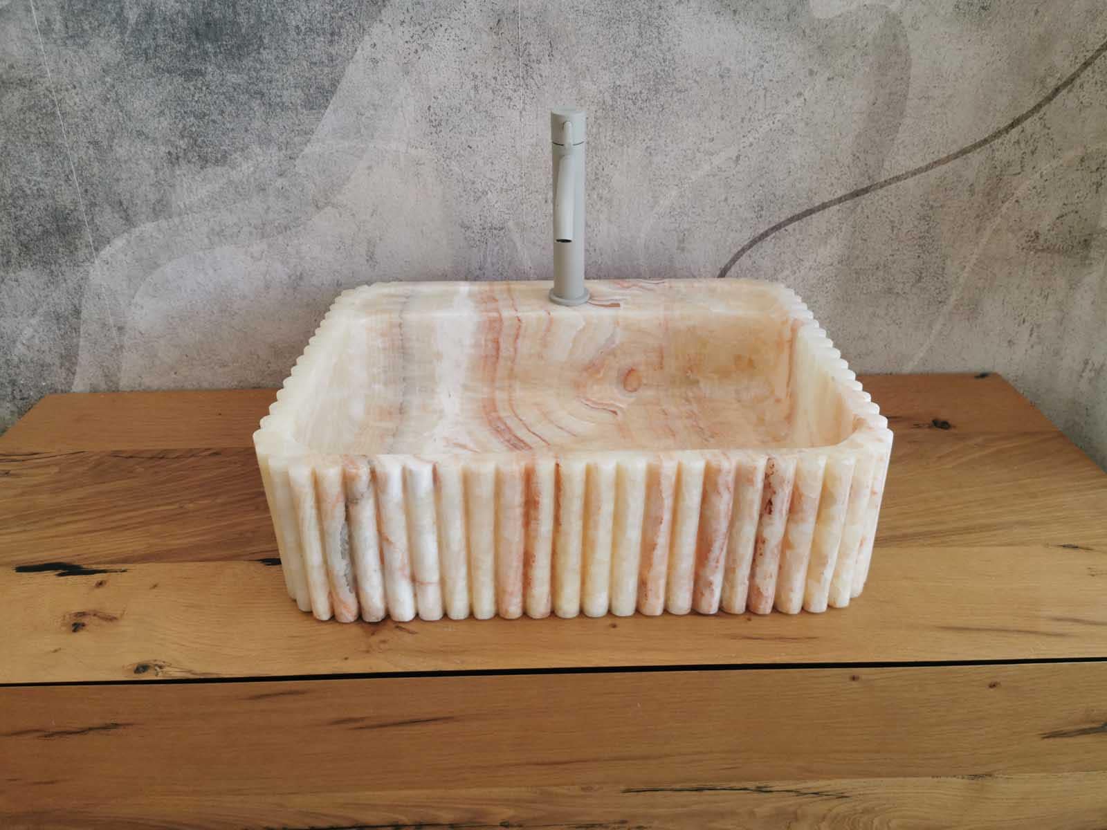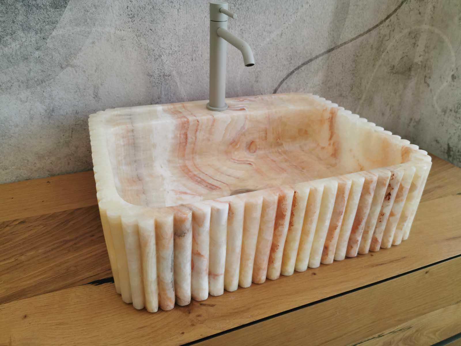 Lavabo in marmo Onice 50x40x14cm con scanalature verticali