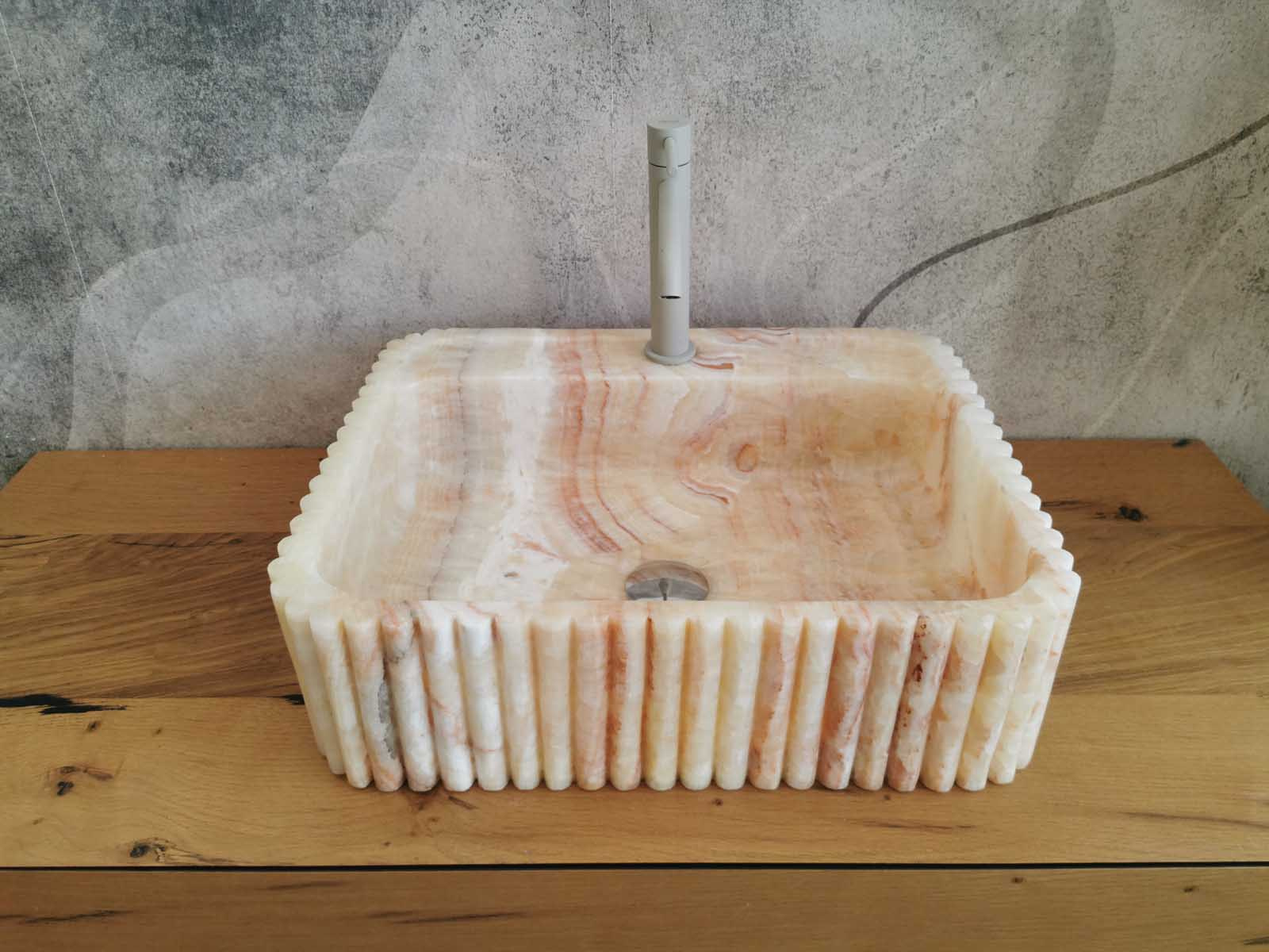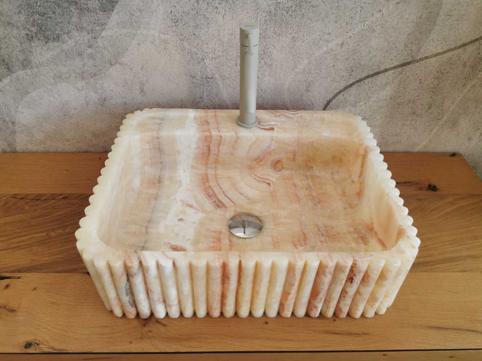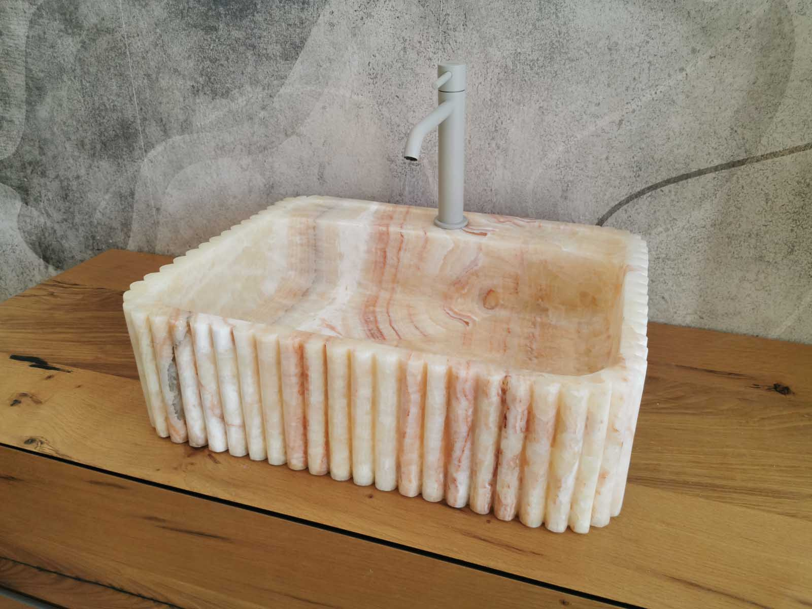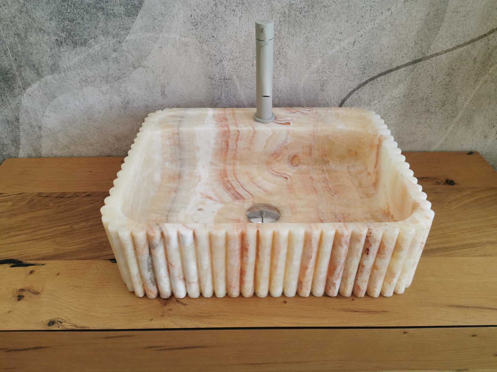 Lavabo in marmo Onice 50x40x14cm con scanalature verticali