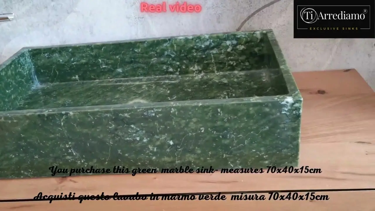 Acquisti questo lavabo in marmo verdeย  che vedi in foto e nel video, queste sono le immagini reali del lavandino, questo lavandino รจ unico nel suo genere.