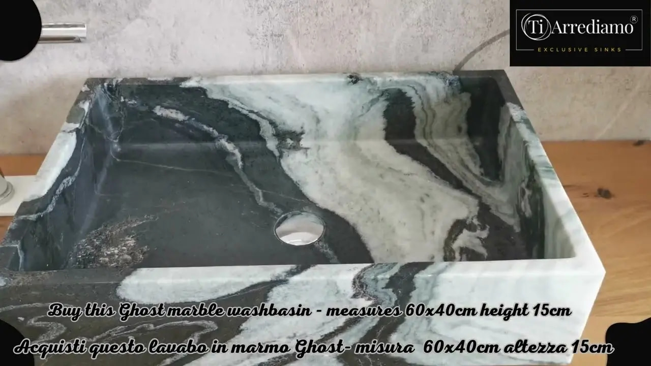 Acquisti il lavabo in marmo Ghost 60x40x15cm che vedi nelle foto e nel video!  Immagini reali del lavandino
