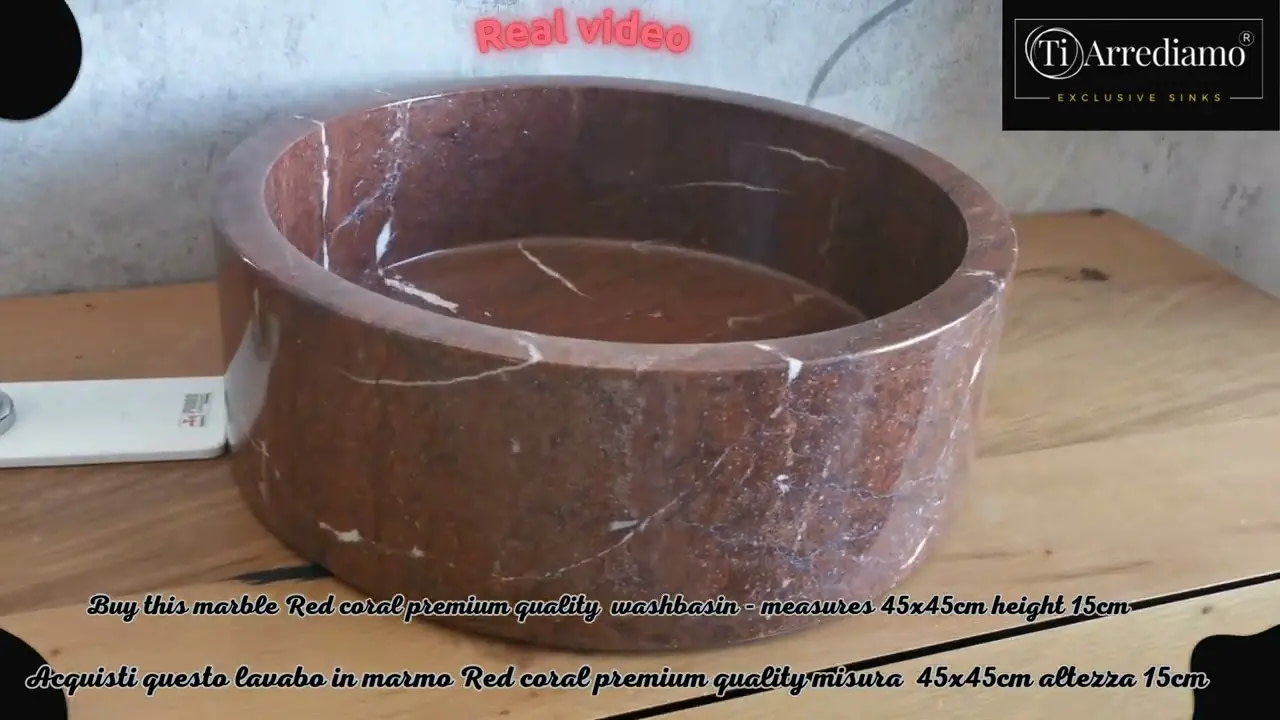 Acquisti il lavabo in marmo red coral 45x45x15cm che vedi nelle foto e nel video!ย  Immagini reali del lavandino