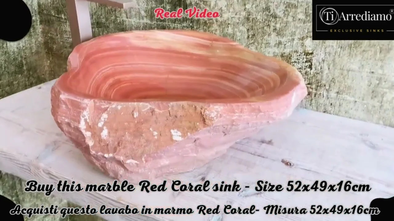 Lavabo rustico grezzo rosso in marmo Red Coral 52x49x16 cm.