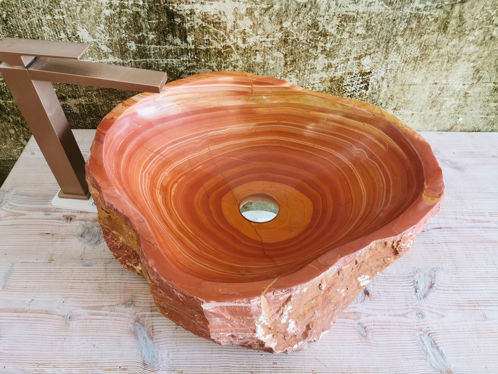 Ogni lavabo rustico grezzo rosso è diverso per forma, venature e sfumature. Non esistono copie. Solo variazioni naturali che diventano valore.