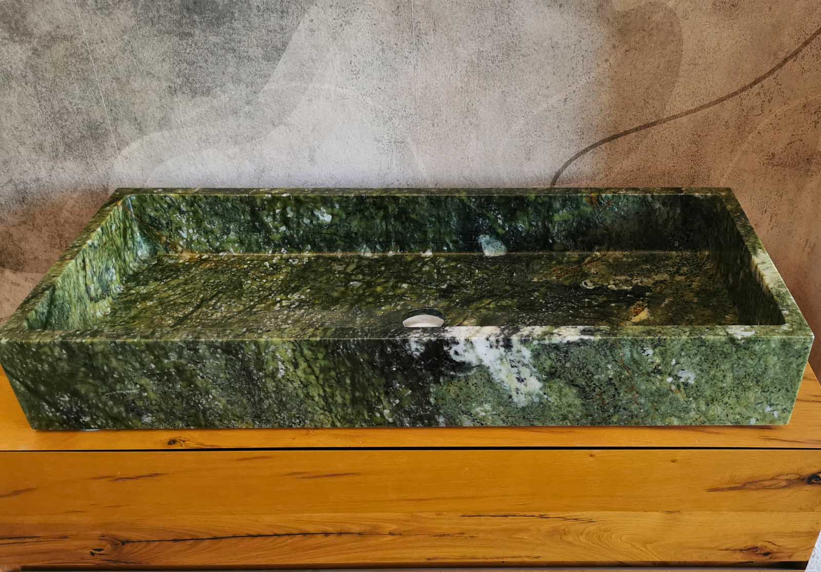 Lavabo verde da bagno in marmo Deep Forest 100×40 cm.