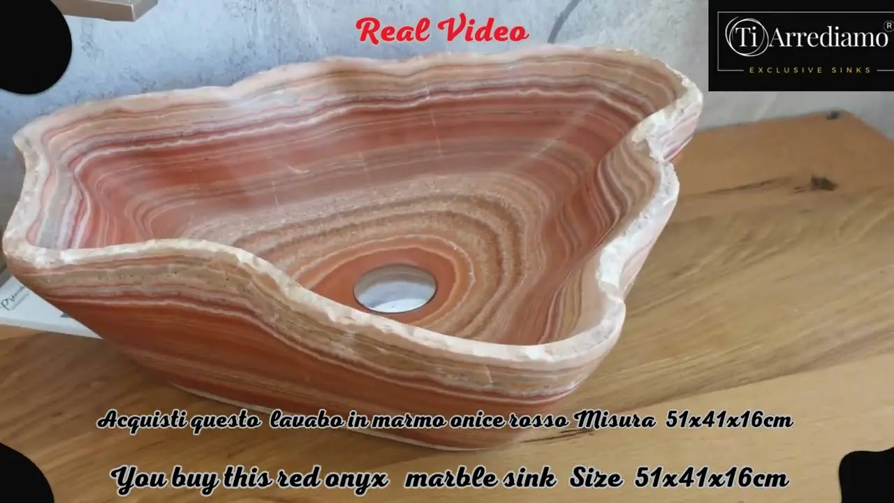 Lavandino in marmo Onice Rosso 51x41x16cm dal design unico