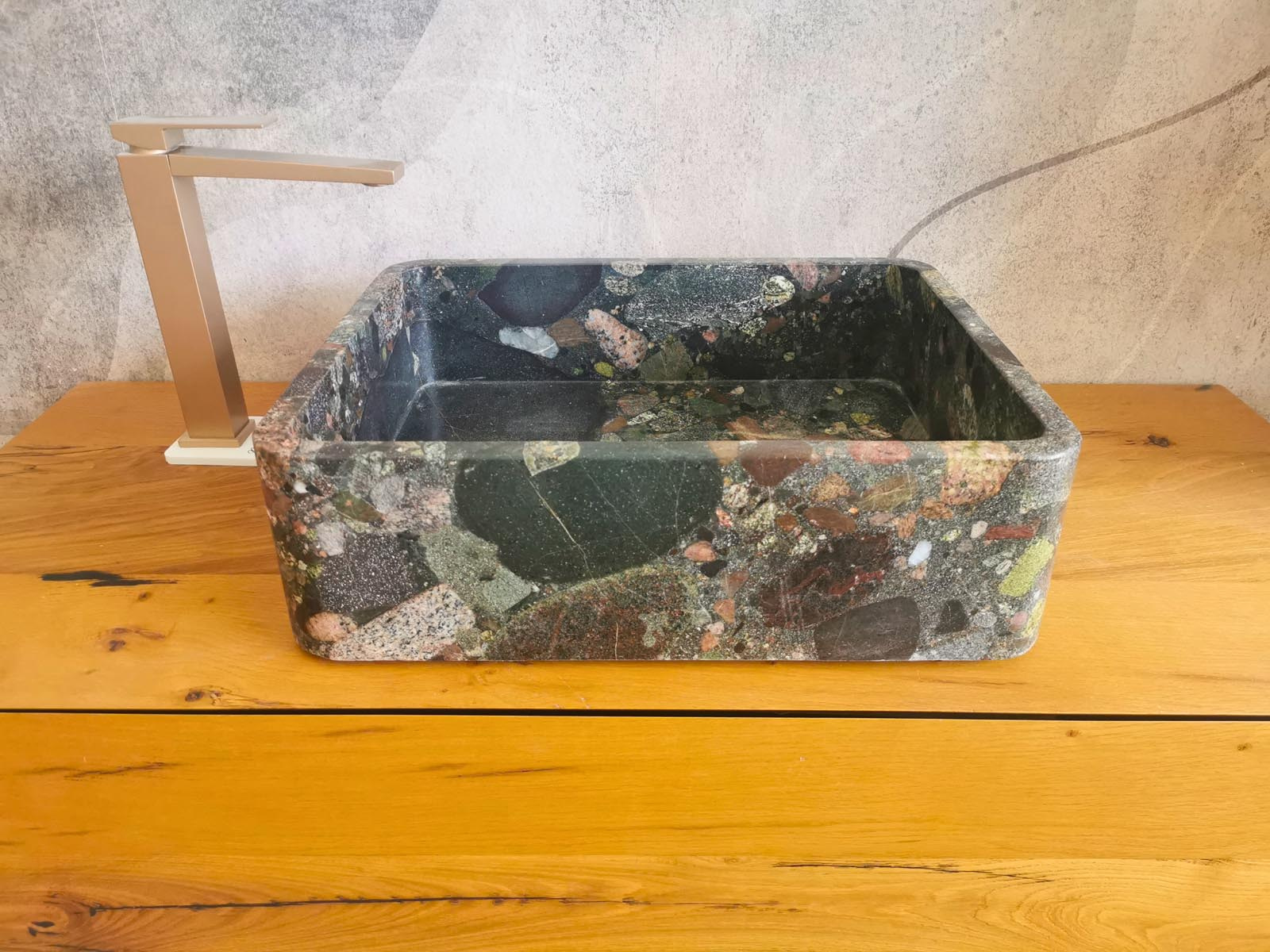 Ogni pezzo è identico? No. Le variazioni cromatiche e di venatura sono intrinseche alla pietra. È proprio questo che rende ogni lavabo particolare in granito naturale un elemento esclusivo.