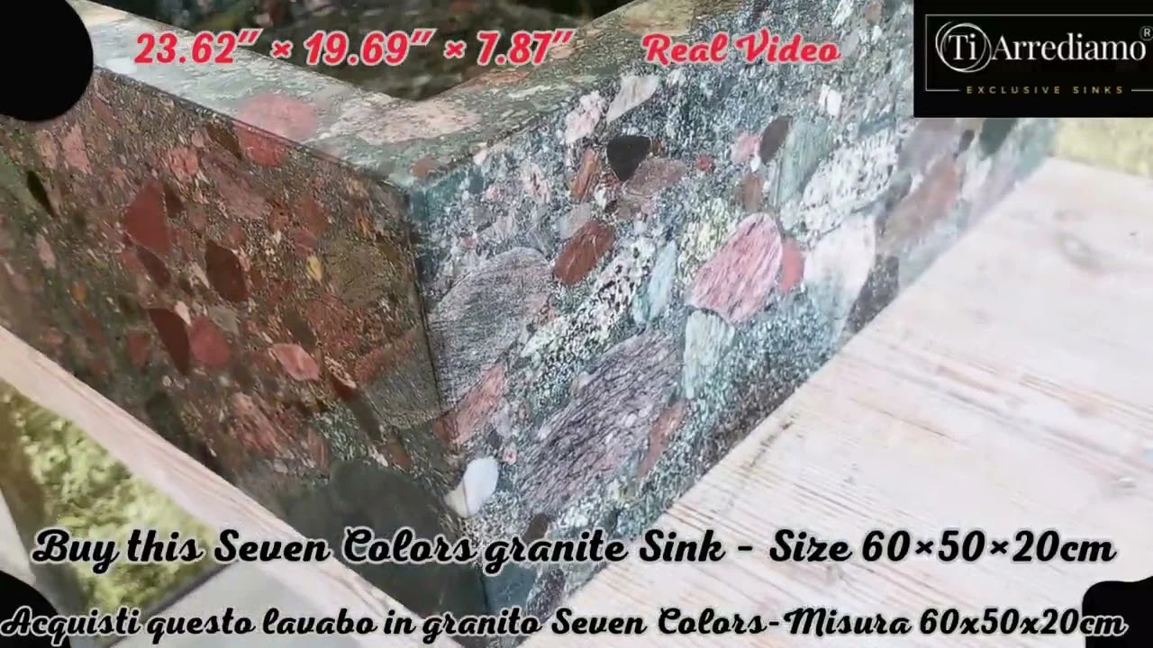 L’installazione è consigliata su piano cucina adeguatamente rinforzato, considerando il peso della pietra naturale. Ogni lavello cucina di design in granito Seven Colors presenta variazioni cromatiche autentiche: le immagini rappresentano fedelmente il materiale, ma ogni esemplare conserva caratteristiche irripetibili legate alla natura stessa della pietra.