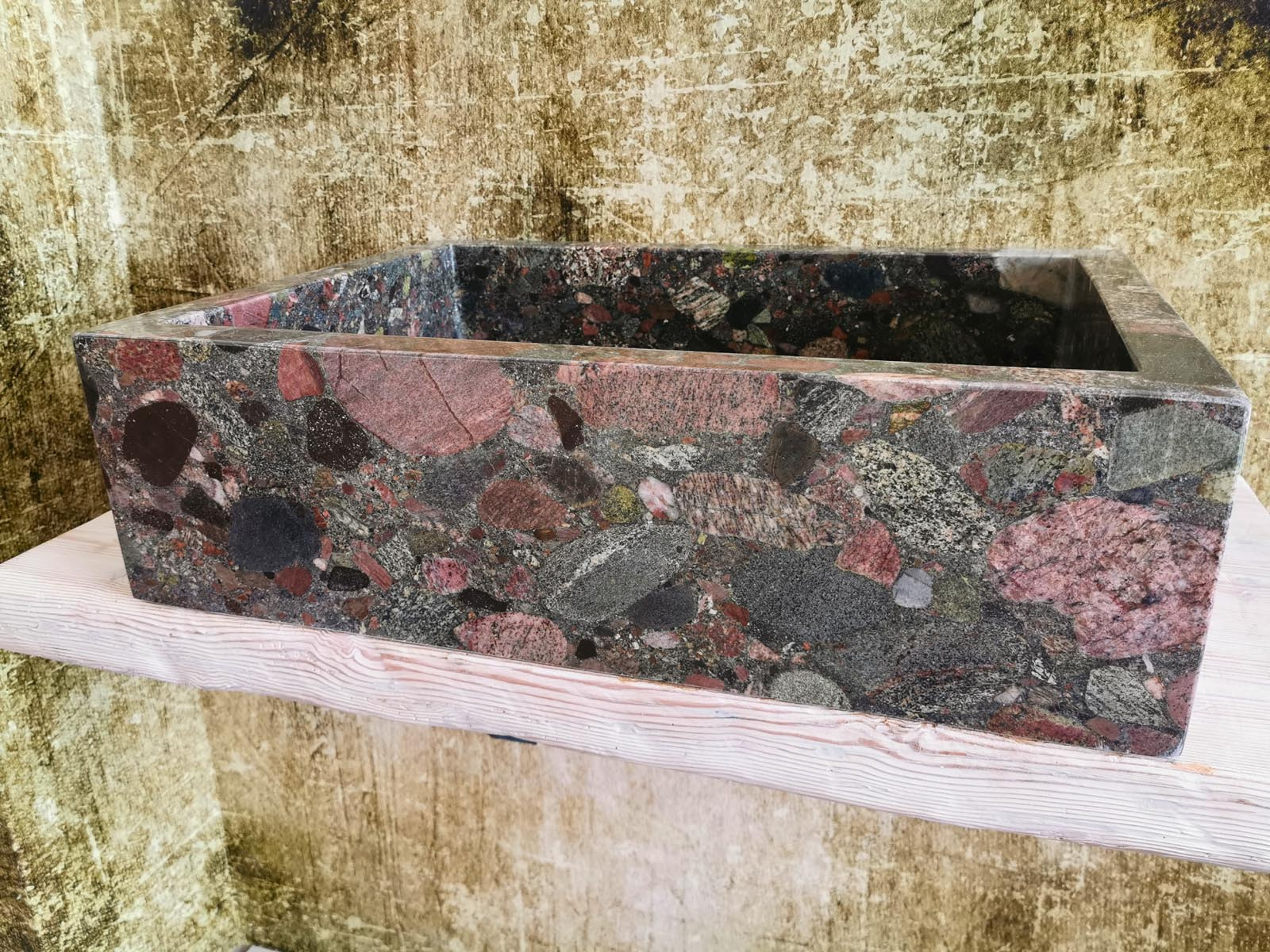 Il granito Seven Colors si distingue per la sua tessitura minerale compatta e per una combinazione cromatica che unisce toni grigio caldi, sfumature sabbia e leggere inclusioni cristalline più scure. La superficie rivela micro-granuli naturali che donano tridimensionalità e movimento visivo. Ogni blocco presenta venature differenti, rendendo ogni lavello un pezzo esclusivo e irripetibile.