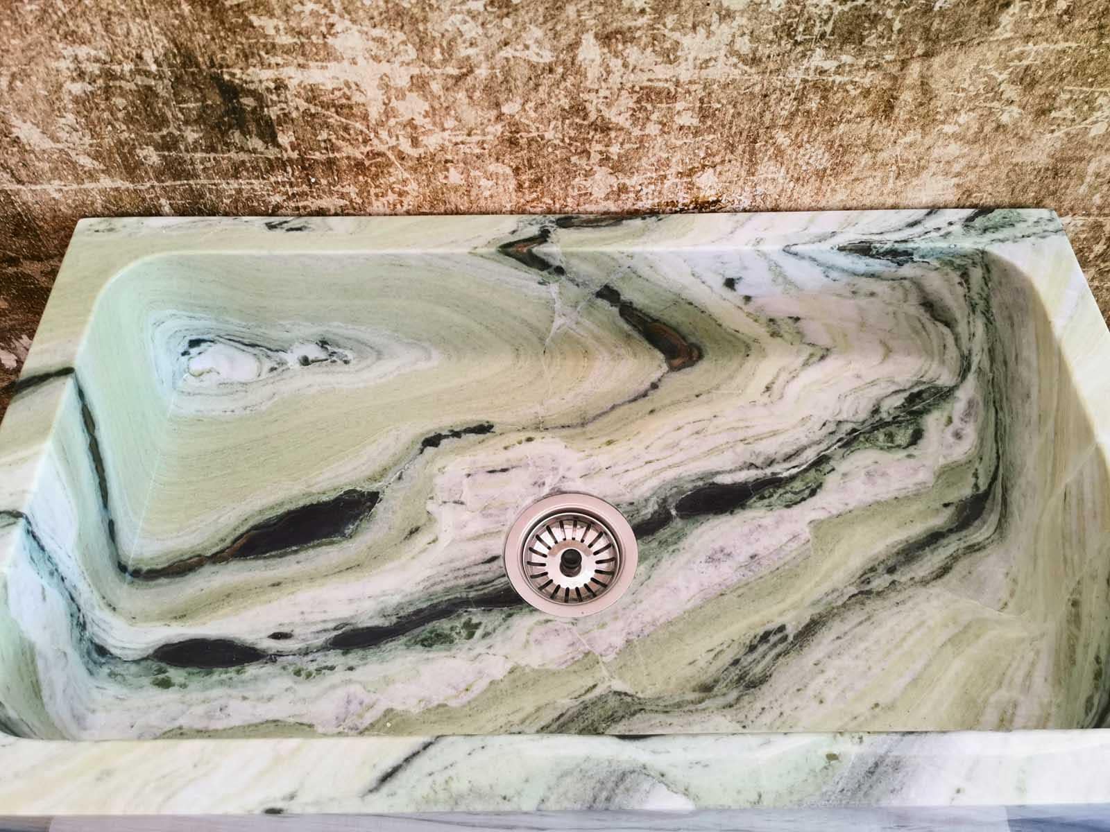 Lavello cucina verde in marmo sangrilla Misura 80x45cm Altezza 20cm
