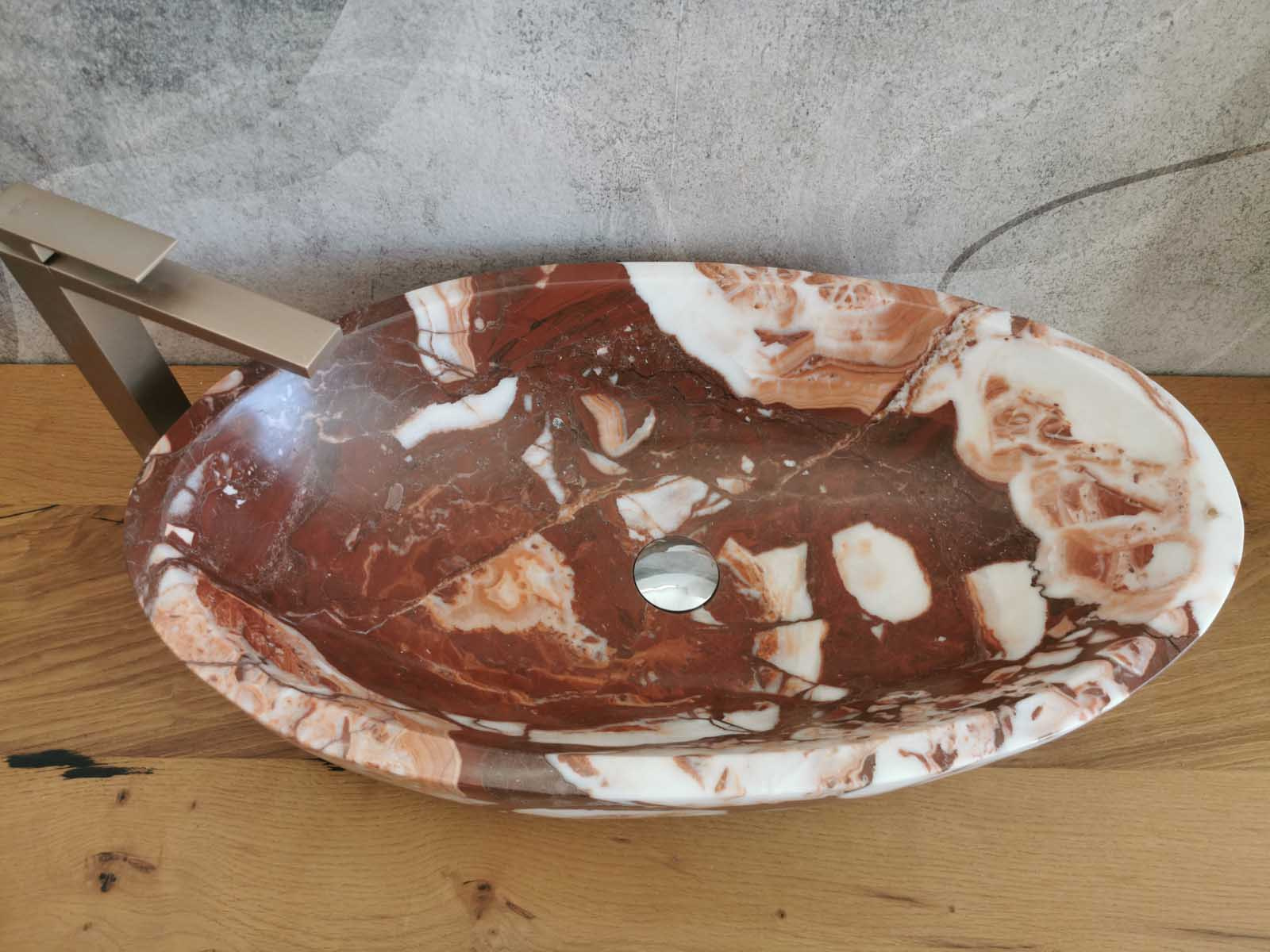 Lavello ovale in marmo Red Coral 70x40x15cm
