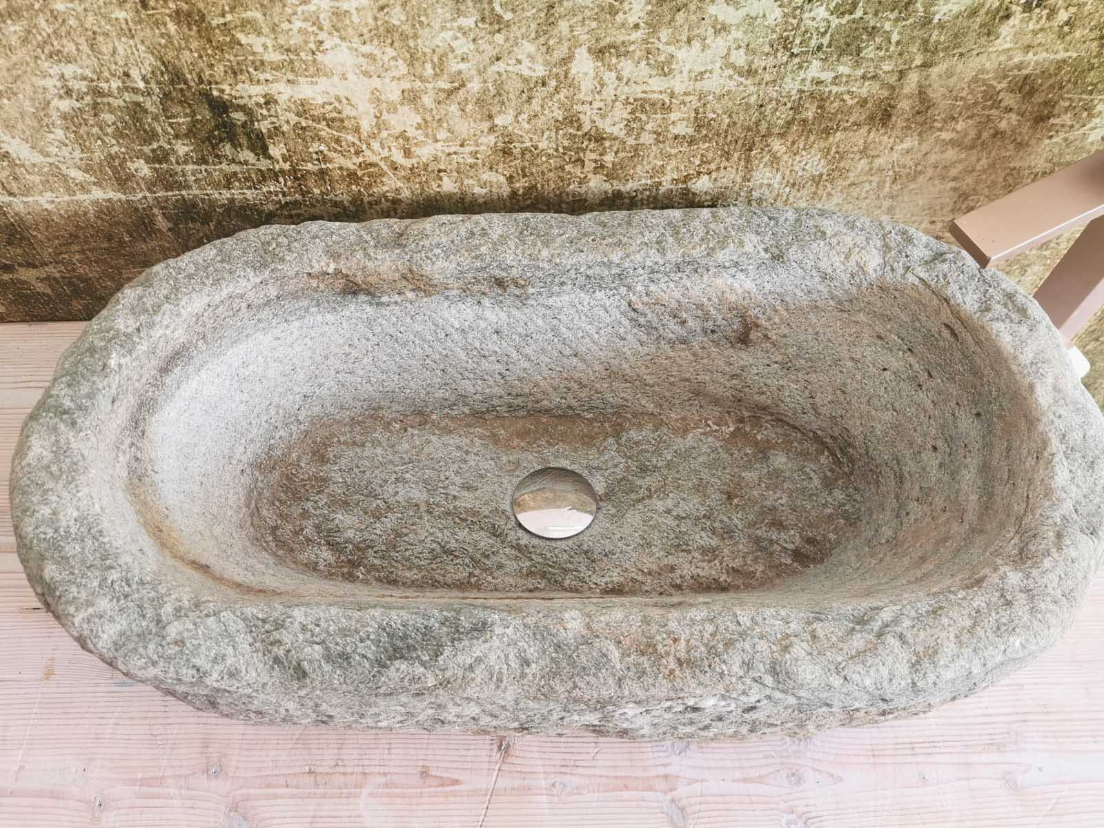 Il lavello rustico in granito antico 72x38x19 cm non nasce per seguire una tendenza, ma per raccontare una materia. La pietra conserva la sua identità naturale: superfici irregolari, texture viva, presenza solida.