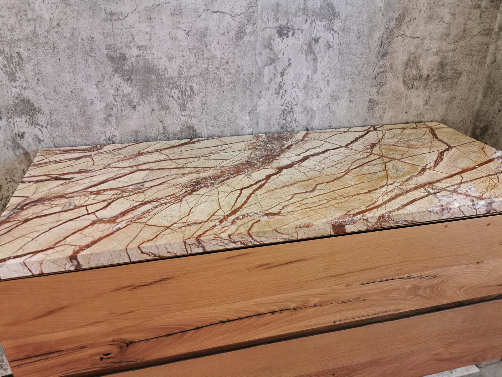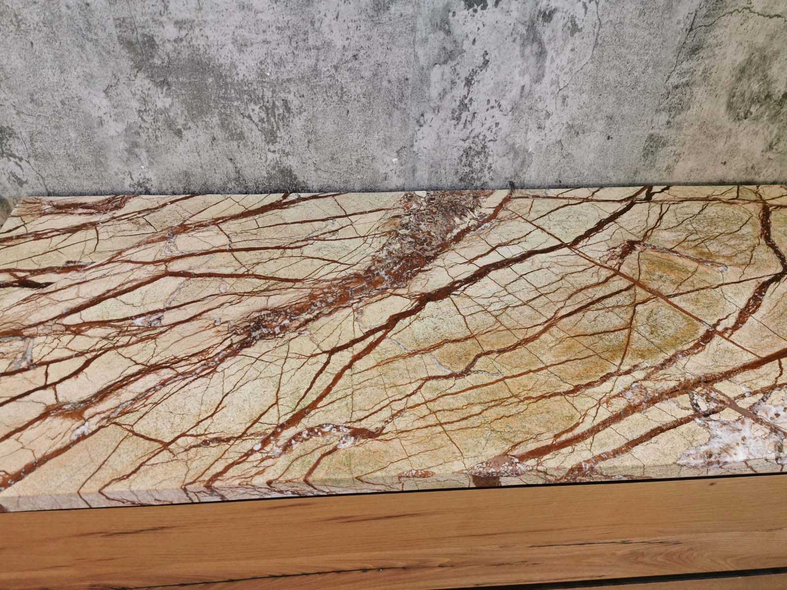 Questa pregiata varietà di marmo si contraddistingue per le sue venature irregolari dal tono marrone e rosso. Le sfumature cromatiche variano dal rosso amaranto al giallo oro con venature sottili. Questa texture unica rende il marmo rain forest perfetto per donare carattere naturale agli ambienti.