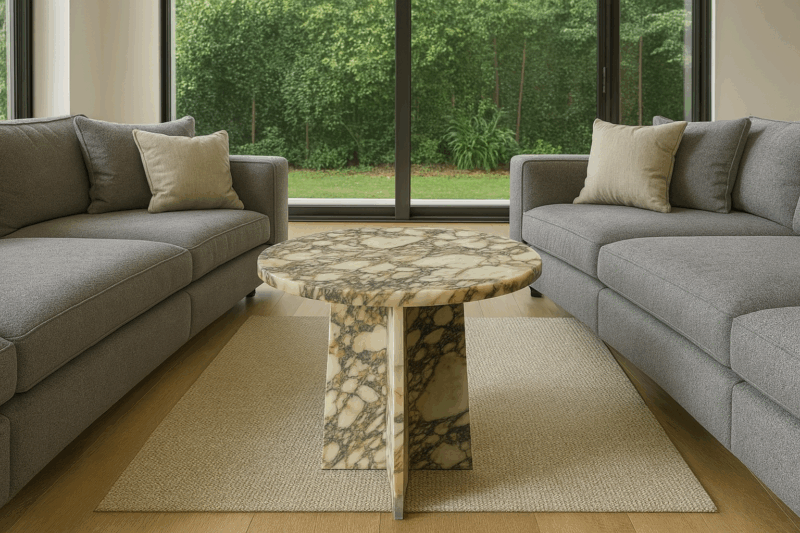tavolino realizzato con lastre in marmo da 1.8cm